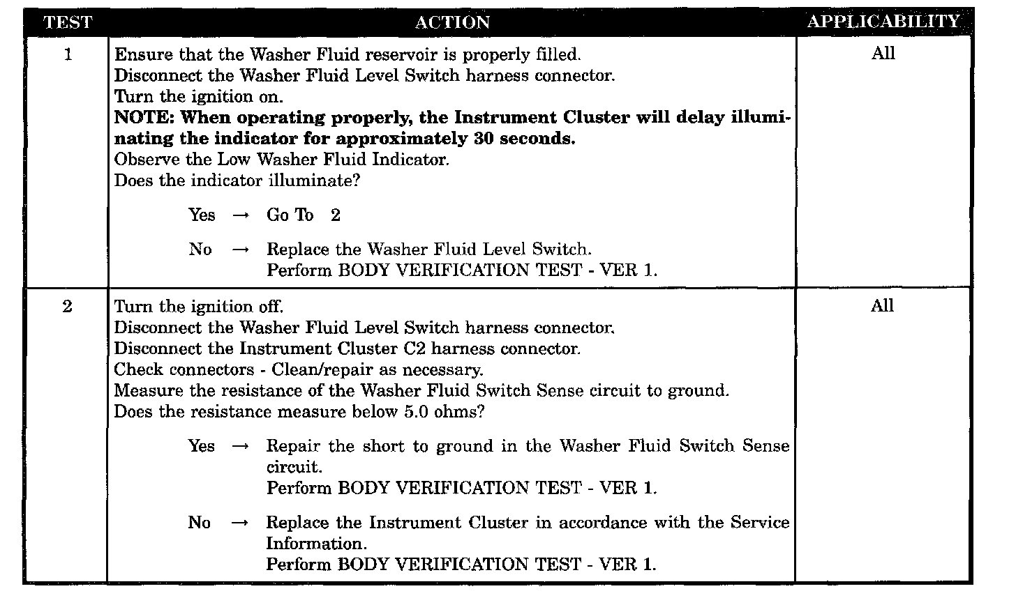 Washer fluid level switch sense circuit shorted to ground