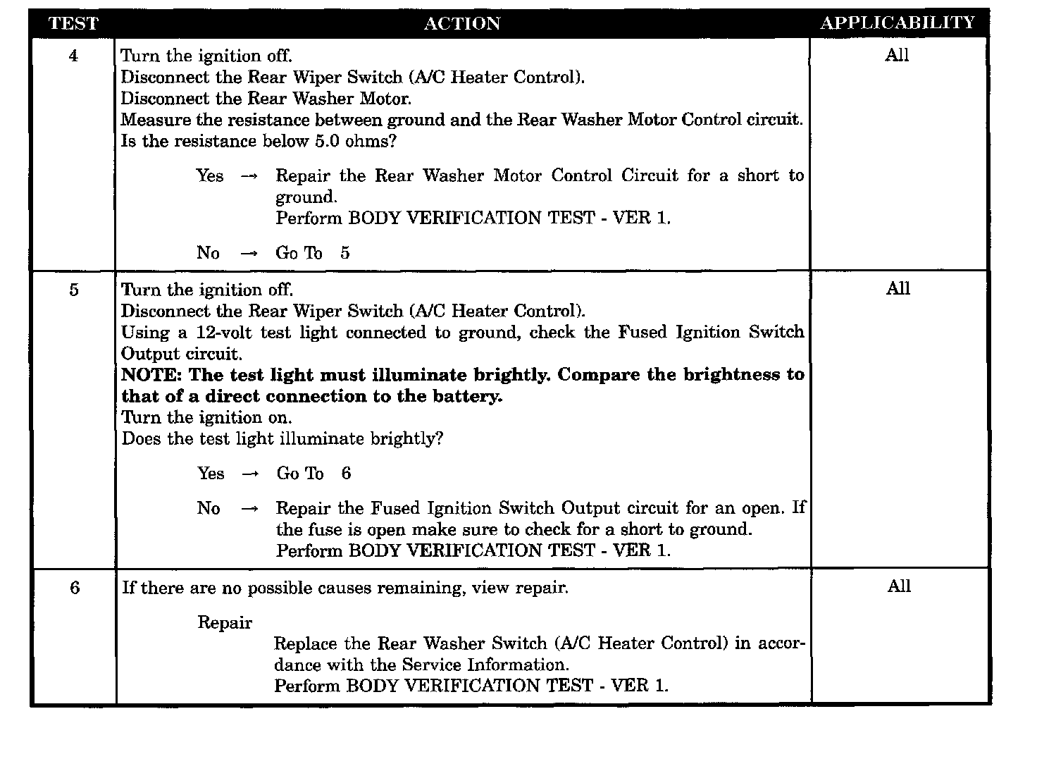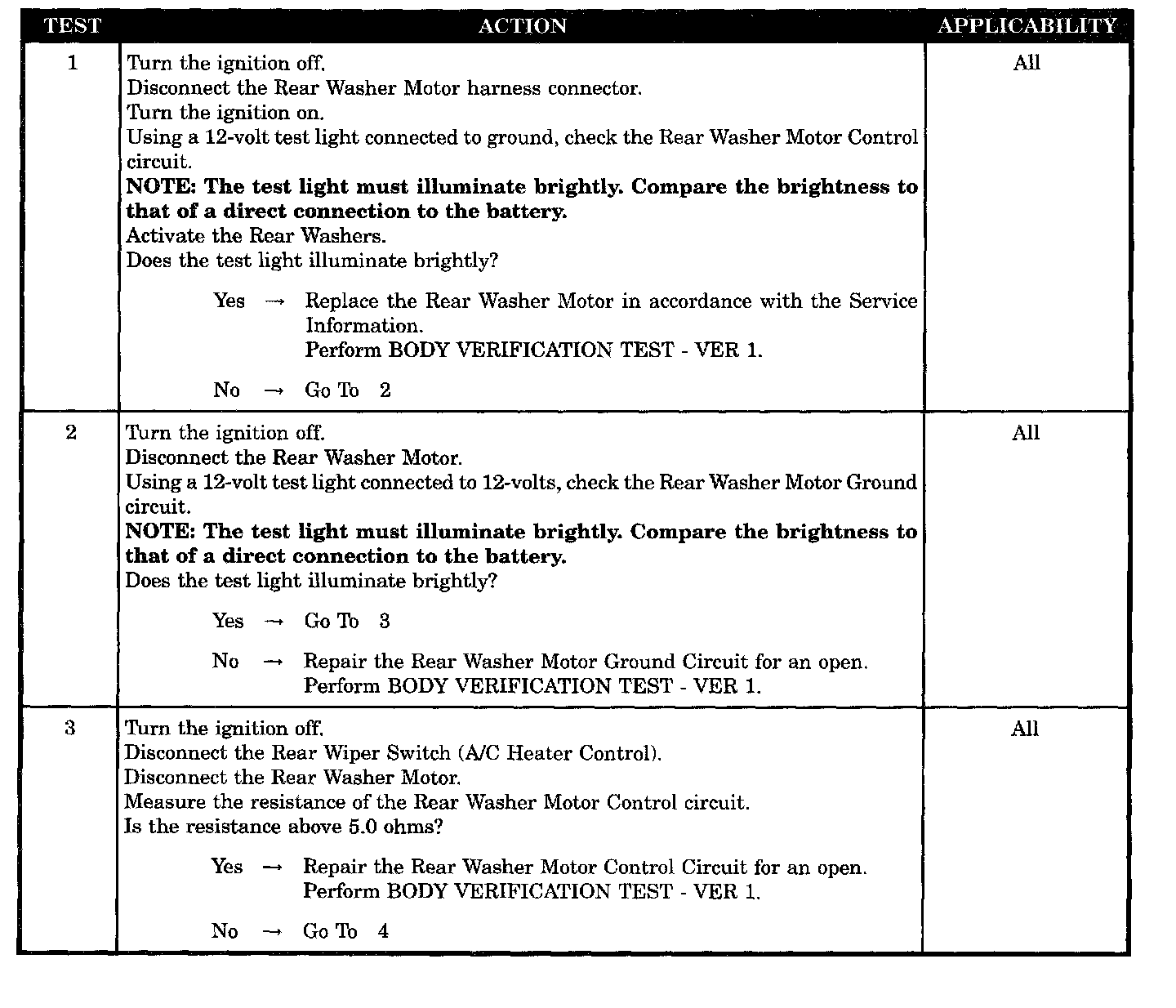 REAR WASHER MOTOR INOPERATIVE