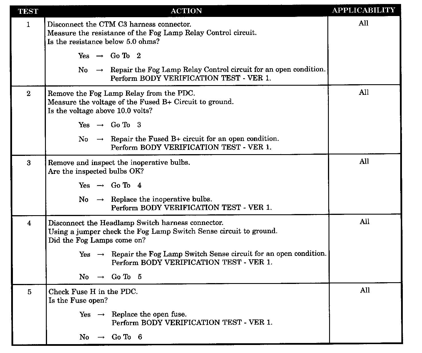 FOG LAMPS WILL NOT TURN ON