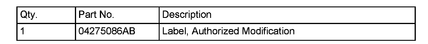 15. Type the necessary information on the "Authorized Modification Label" p/n 04275086AB and attach near the VECI label.