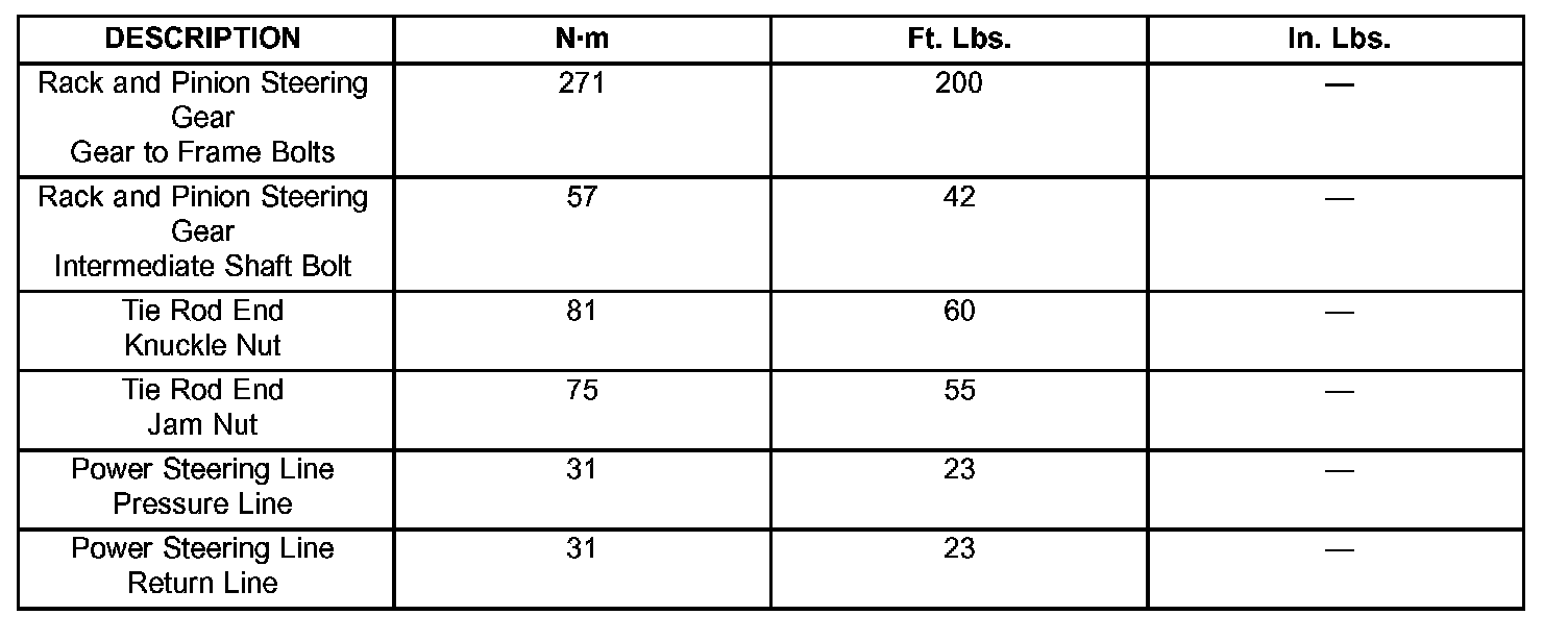 Torque Specifications: