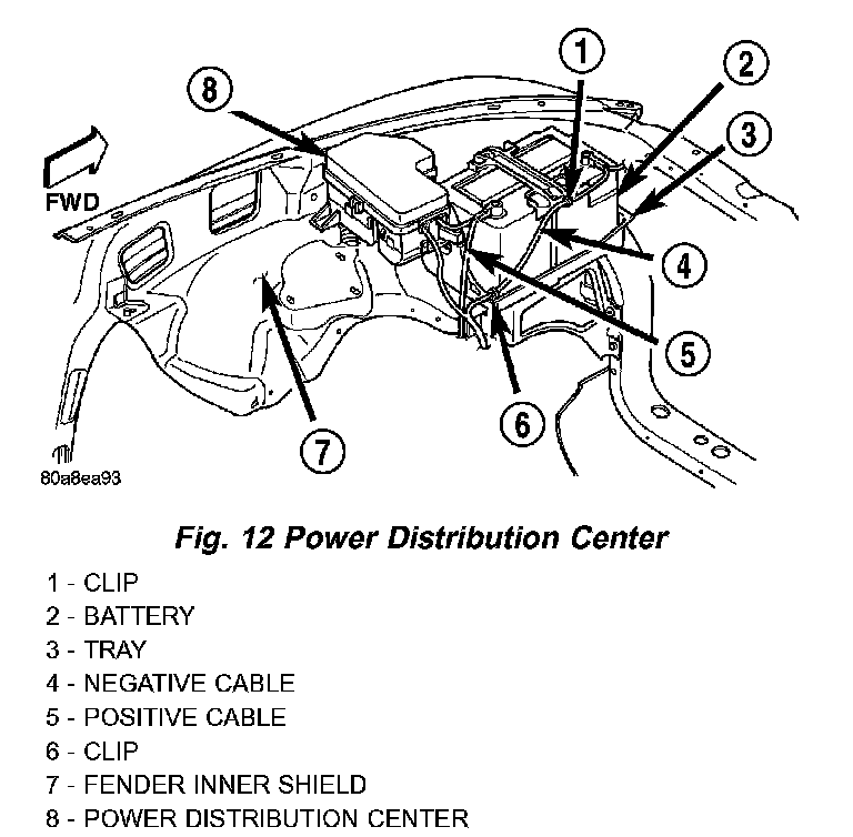 2. Remove cover from Power Distribution Center (PDC) (Fig. 12).