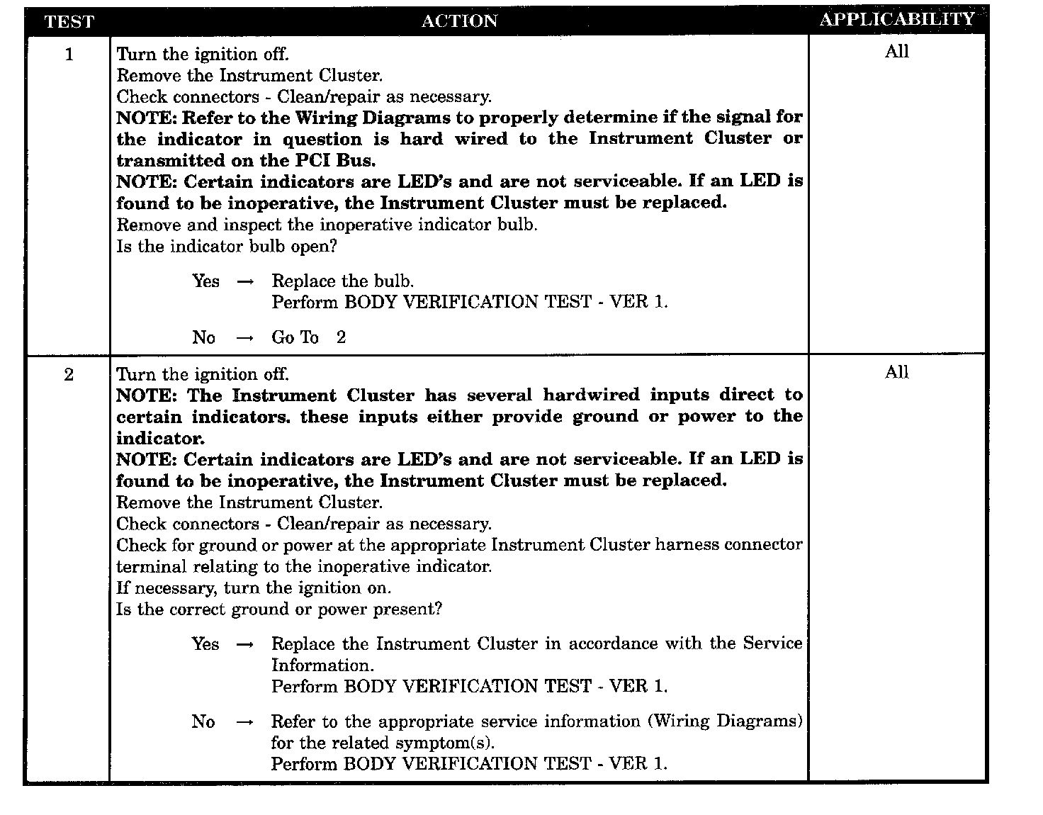 ANY HARDWIRED CLUSTER INDICATOR INOPERATIVE