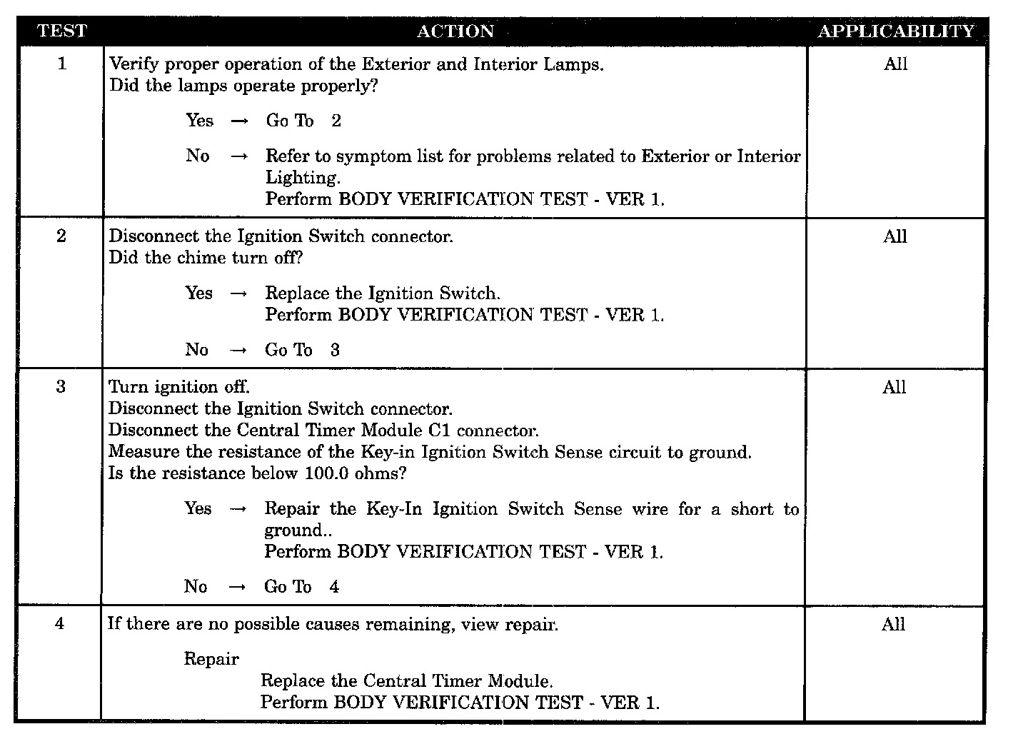 CHIME SOUNDS WITH DRIVER'S DOOR OPEN, KEY REMOVED