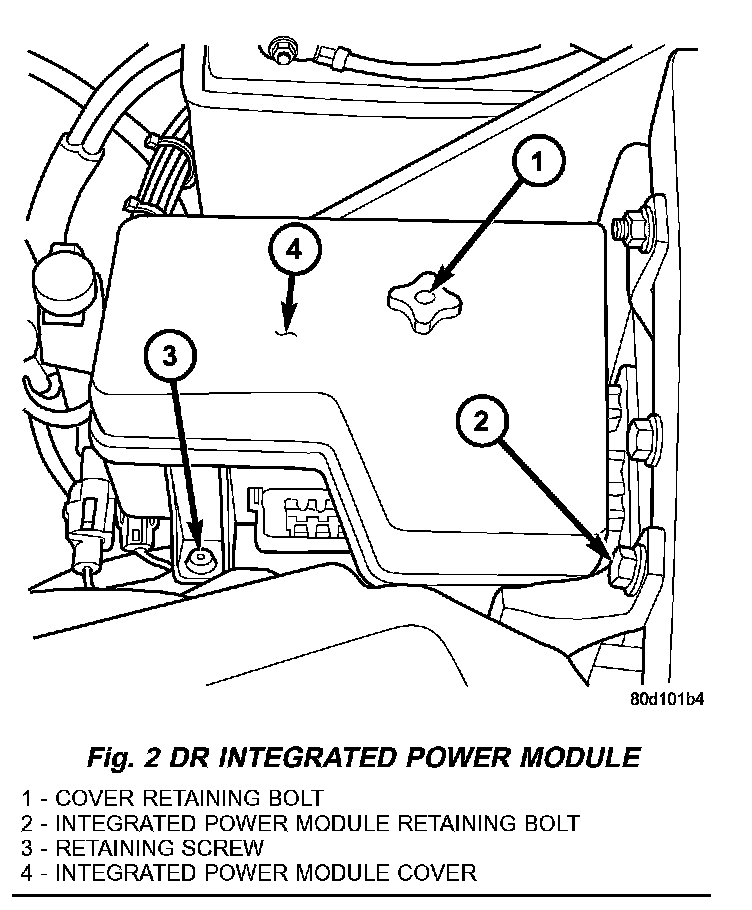 4. Remove the integrated power module retaining bolt and screw (Fig. 2).