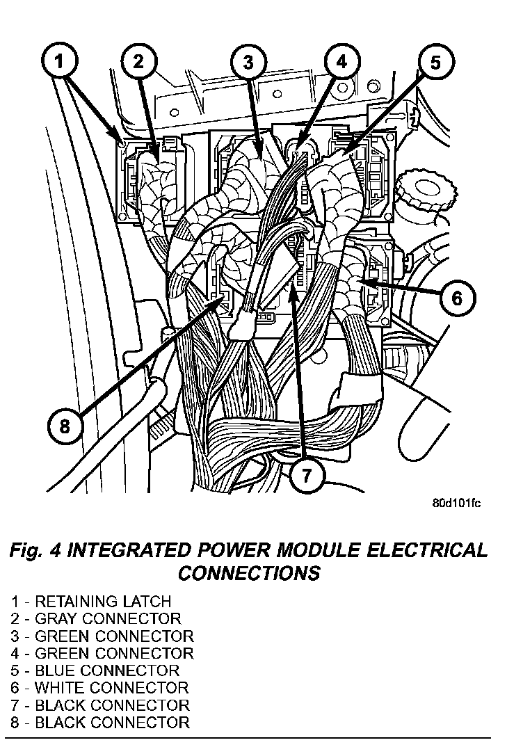 NOTE: Integrated power module electrical connectors are color coded to ease location reference (Fig. 4).