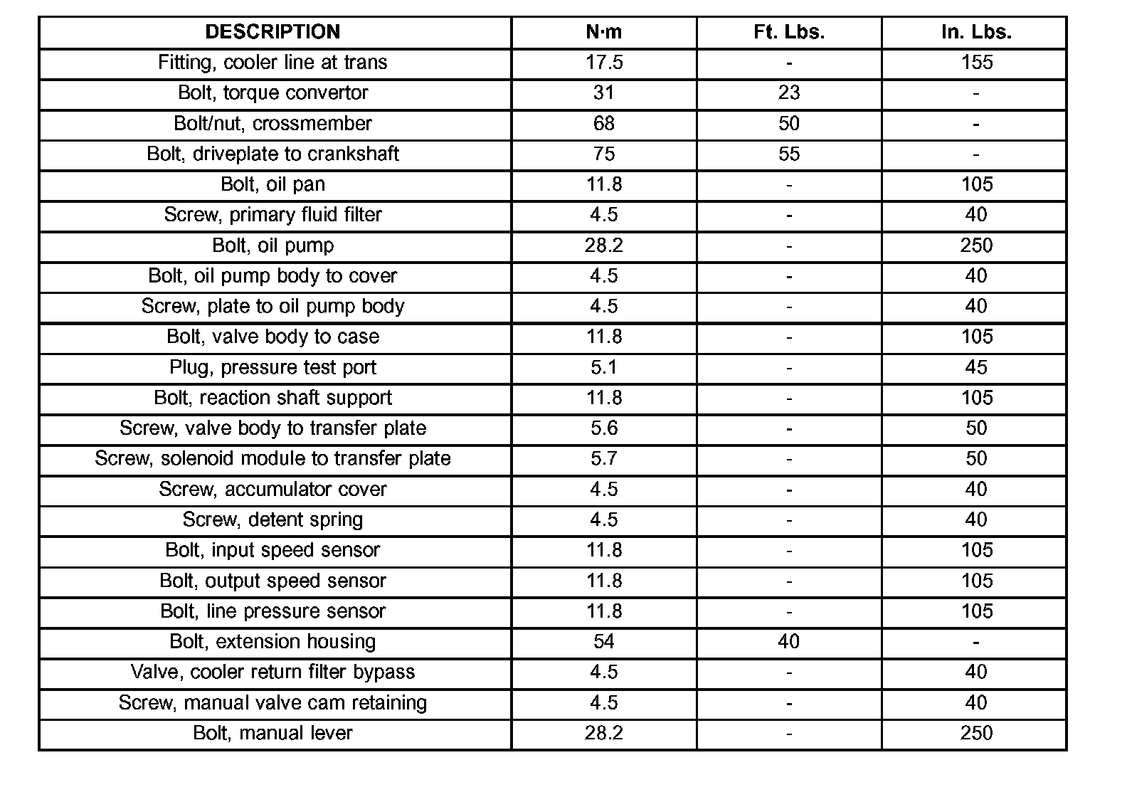 Torque Specifications