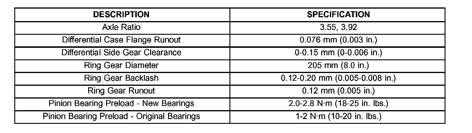 Axle Specifications