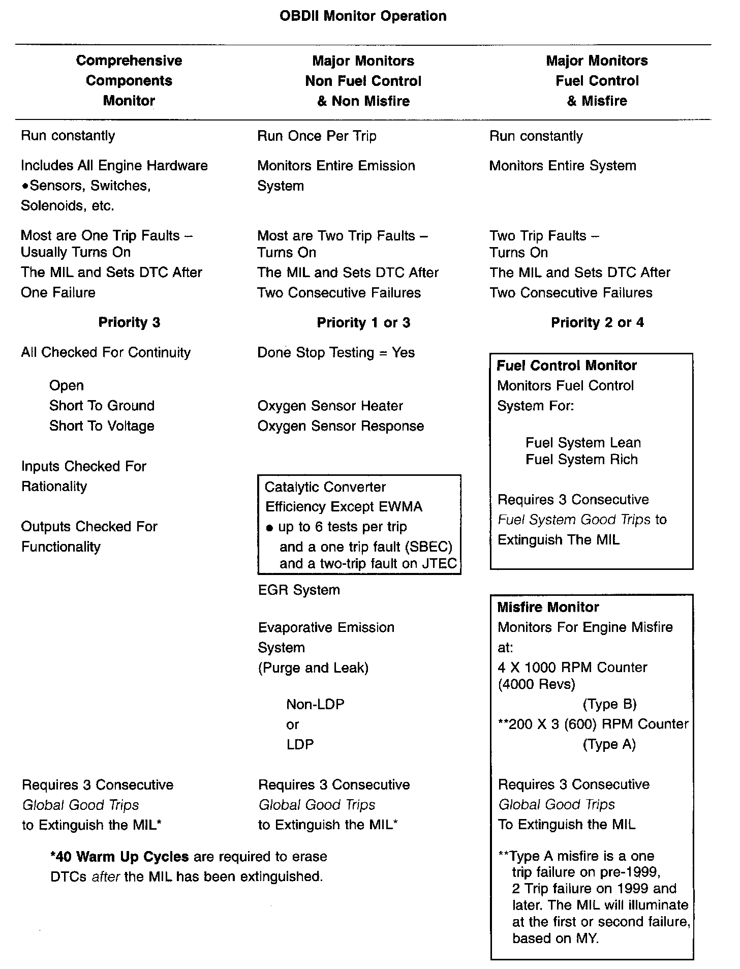 The On-Board Diagnostics have evolved to the second generation of diagnostics referred to as OBDII. These OBDII Diagnostics control the functions necessary to meet the requirements of California OBDII and Federal OBD regulations. These requirements specify the inclusion of a Malfunction Indicator Light (MIL) located on the instrument panel for all 1994 and subsequent model-year passenger cars, light duty trucks, and medium-duty vehicles. The purpose of the MIL is to inform the vehicle operator in the event of the malfunction of any emission systems and components which can affect emissions and which provide input to, or receive output from, the PCM.