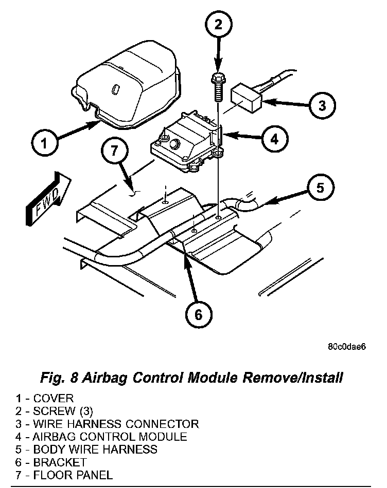 - THE AIRBAG CONTROL MODULE CONTAINS THE IMPACT SENSOR, WHICH ENABLES THE SYSTEM TO DEPLOY THE SUPPLEMENTAL RESTRAINTS. NEVER STRIKE OR DROP THE AIR-BAG CONTROL MODULE, AS IT CAN DAMAGE THE IMPACT SENSOR OR AFFECT ITS CALIBRATION. IF AN AIRBAG CONTROL MODULE IS ACCIDENTALLY DROPPED DURING SERVICE, THE MODULE MUST BE SCRAPPED AND REPLACED WITH A NEW UNIT. FAILURE TO OBSERVE THIS WARNING COULD RESULT IN ACCIDENTAL, INCOMPLETE, OR IMPROPER SUPPLEMENTAL RESTRAINT DEPLOYMENT AND POSSIBLE OCCUPANT INJURIES.