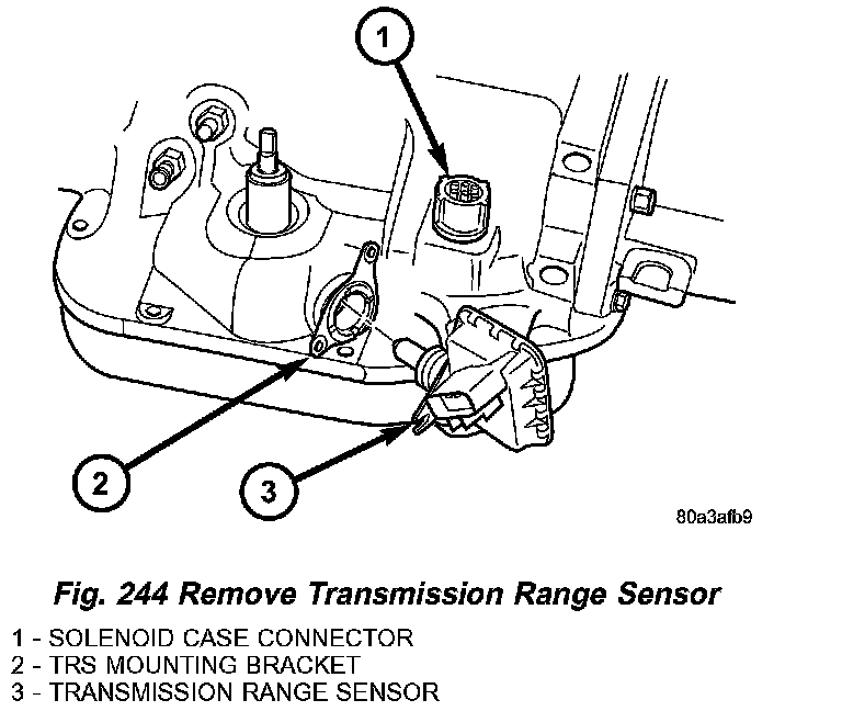 REMOVAL1. Raise vehicle and position drain pan under the Transmission Range Sensor (TRS).