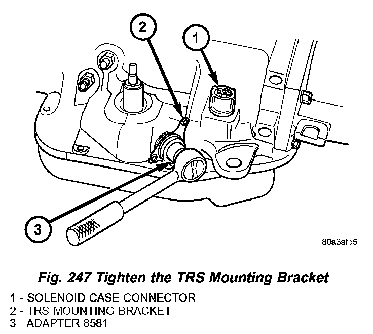 2. Install the TRS mounting bracket into the transmission case. Using Adapter 8581 (Fig. 247), tighten the mounting bracket to 34 Nm (300 inch lbs.).