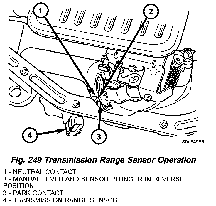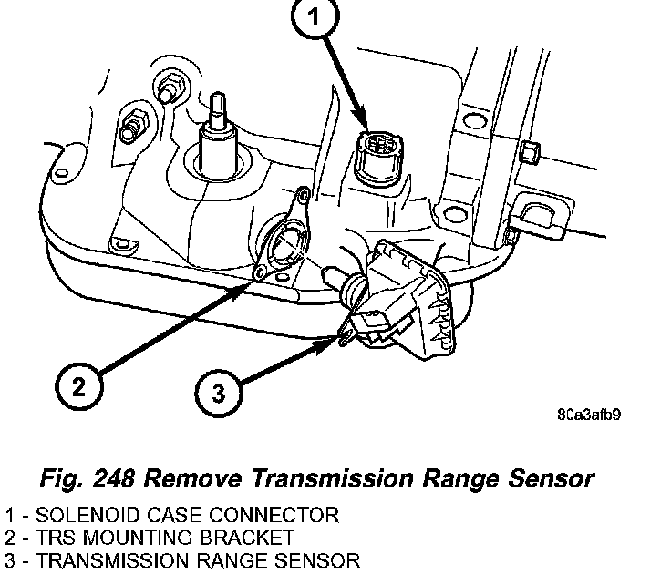 3. Install the TRS (Fig. 248) into the mounting bracket with the wiring connector facing the front of the transmission.