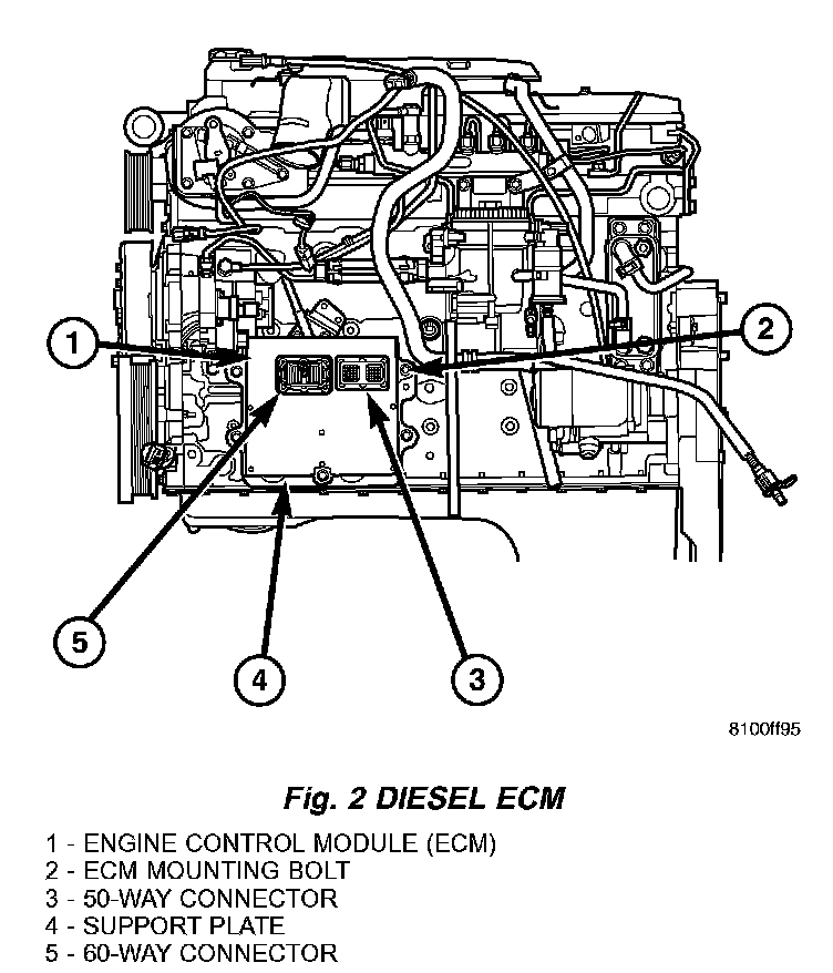 The Engine Control Module (ECM) is bolted to the left side of the engine below the intake manifold.