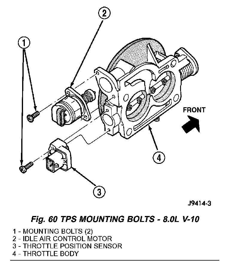 Fig.60 TPS Mounting Bolts - 8.0L V-10: