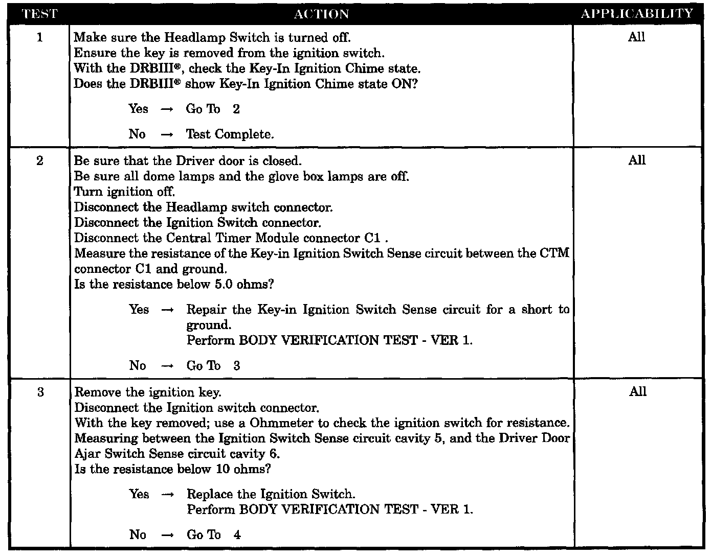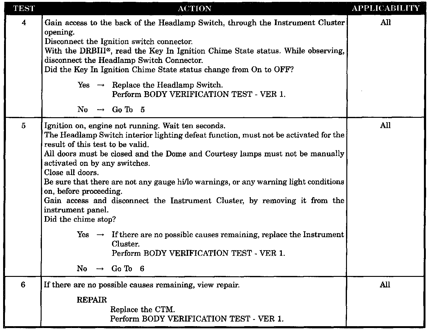 - Headlamp switch shorted test, for chime system