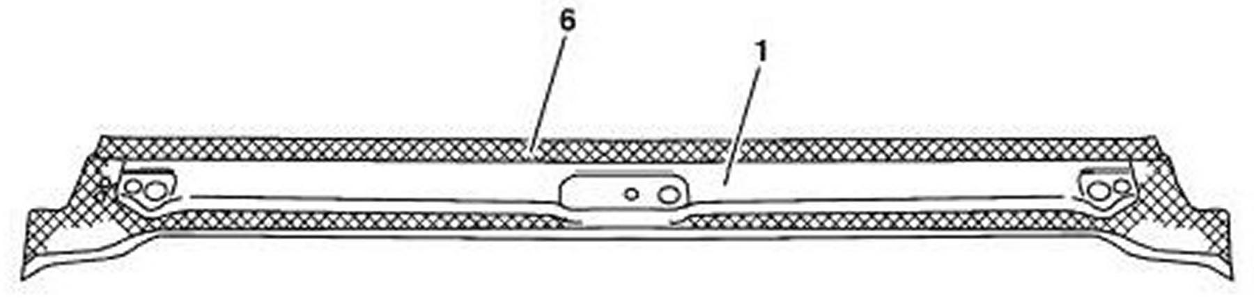 3. Grind waist rail paneling (1) down to bare metal in marked area (6) and coat with zinc dust paint.
