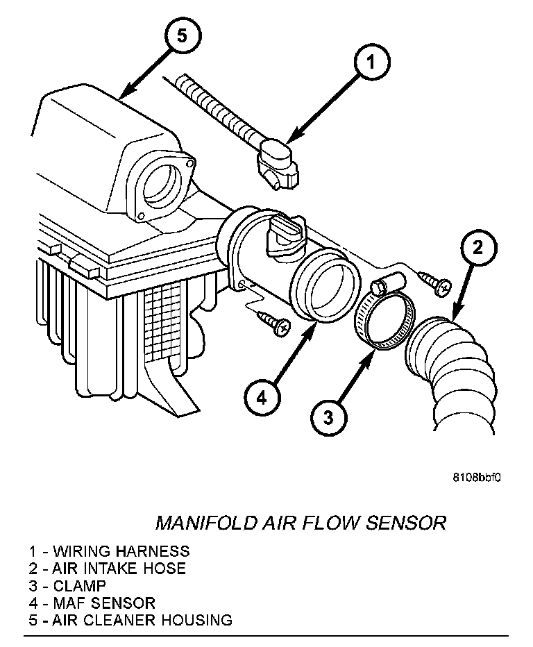 4. Remove the screws retaining the MAF sensor to the air cleaner housing, and remove MAF sensor.