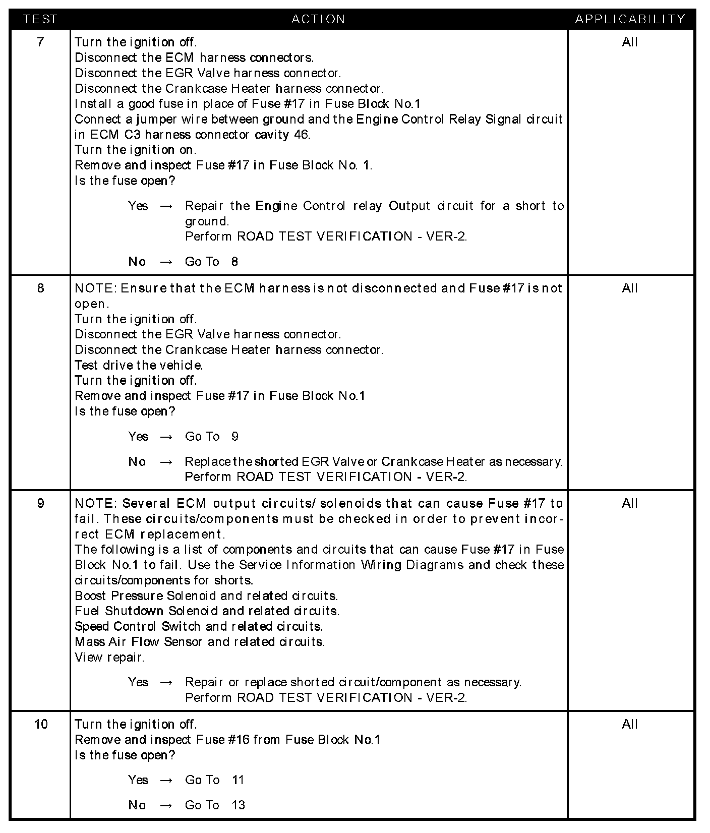 - Engine control relay output CKT shorted to ground fuse #17