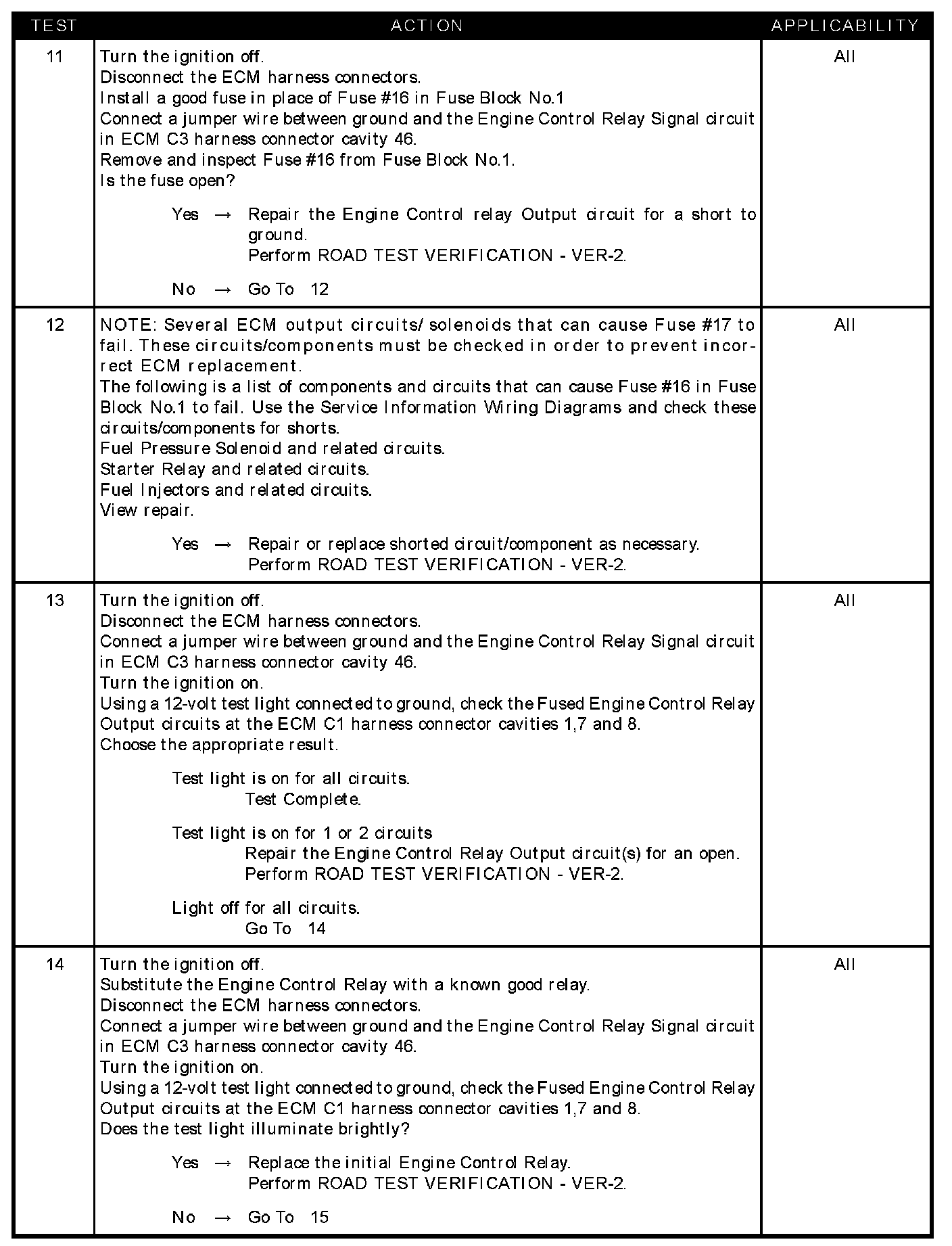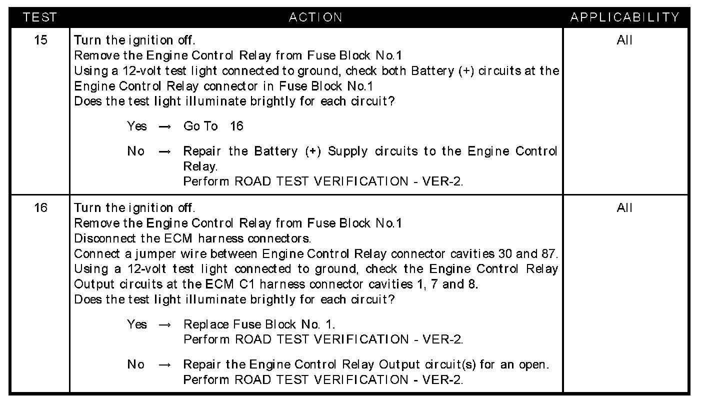 - Engine control relay output CKT shorted to ground fuse #16