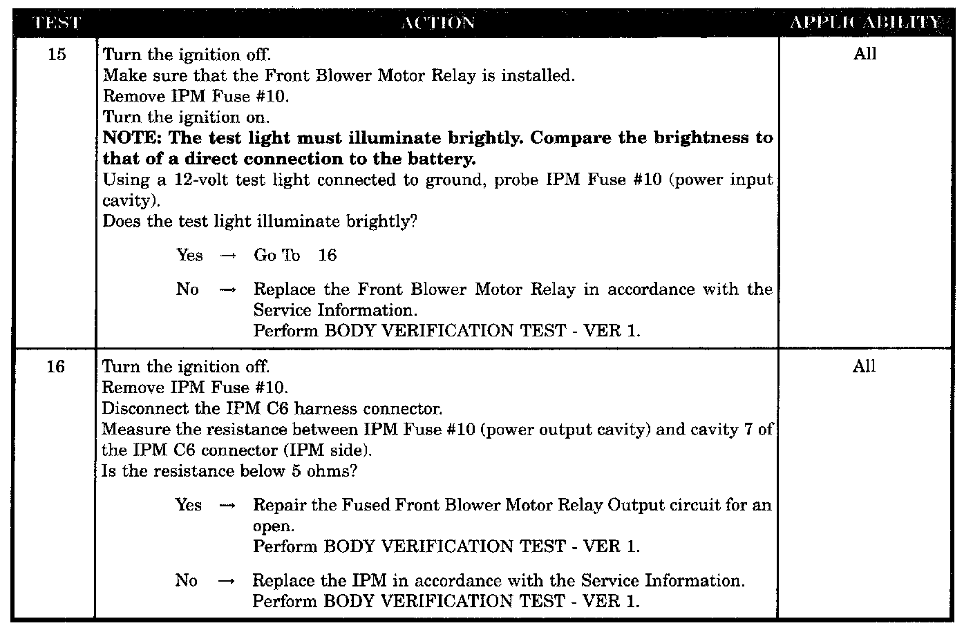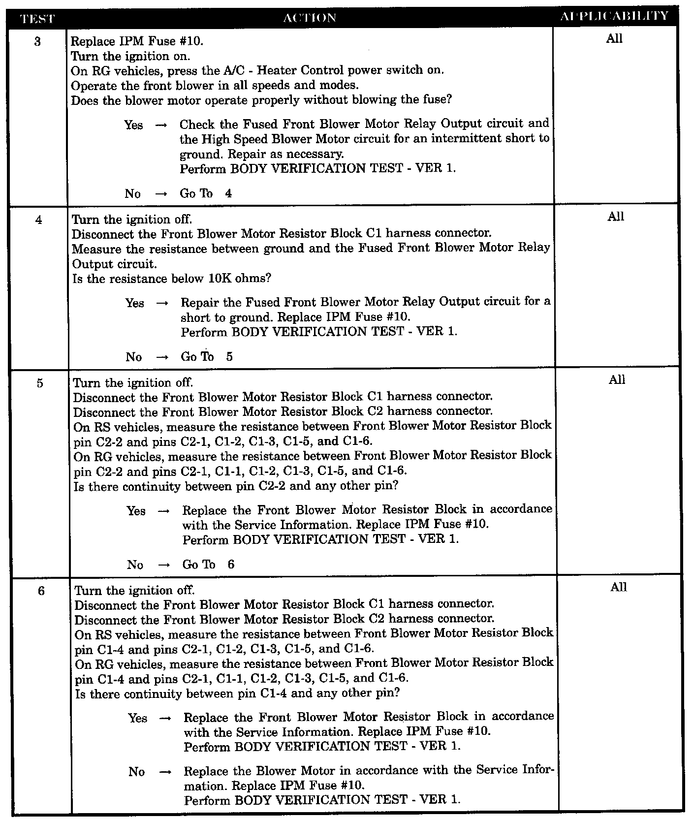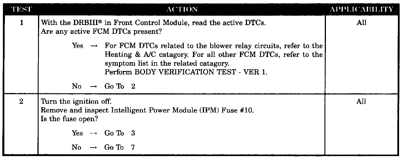 - Fused front blower motor relay output circuit open