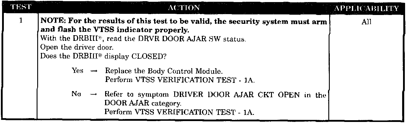 Check DRBIII(R) for driver door ajar response