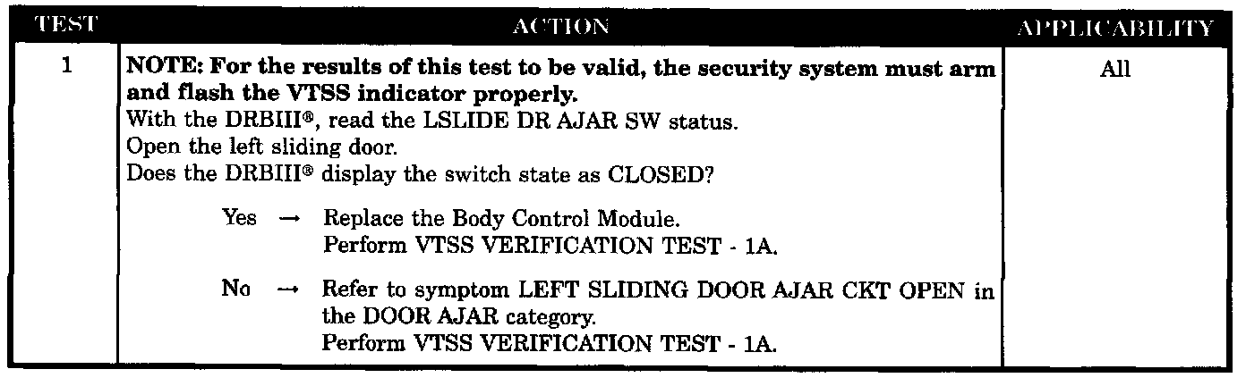 LEFT SLIDING DOOR DOES NOT TRIP VTSS