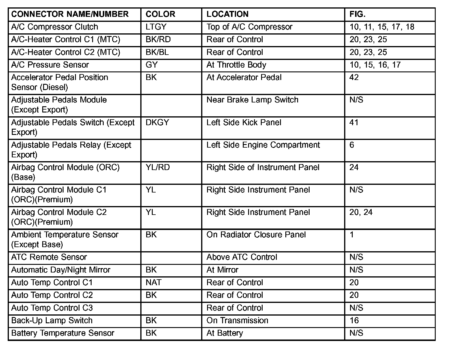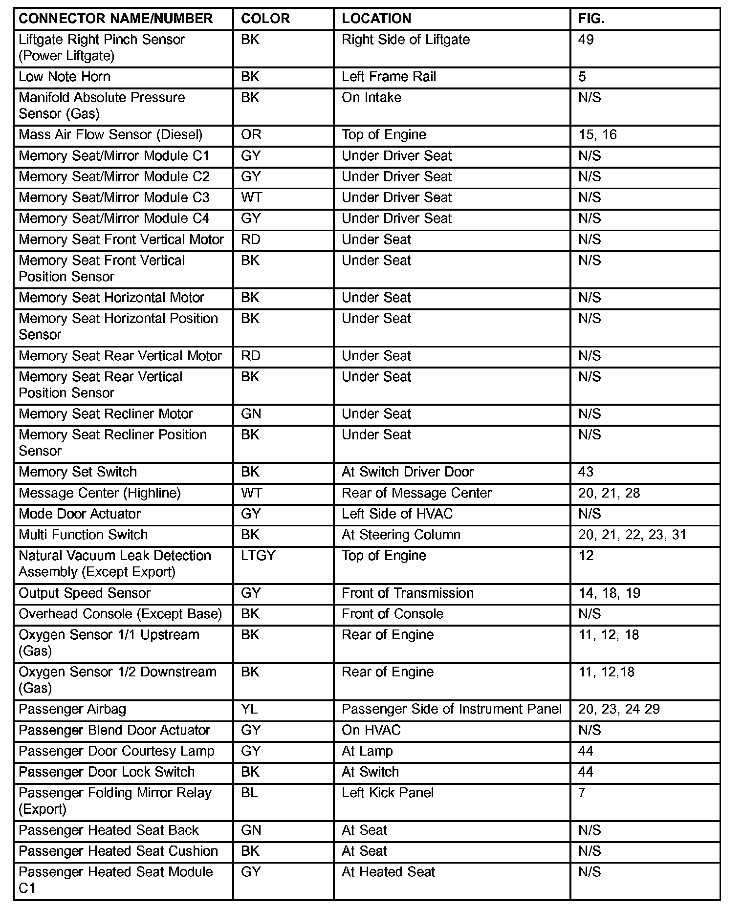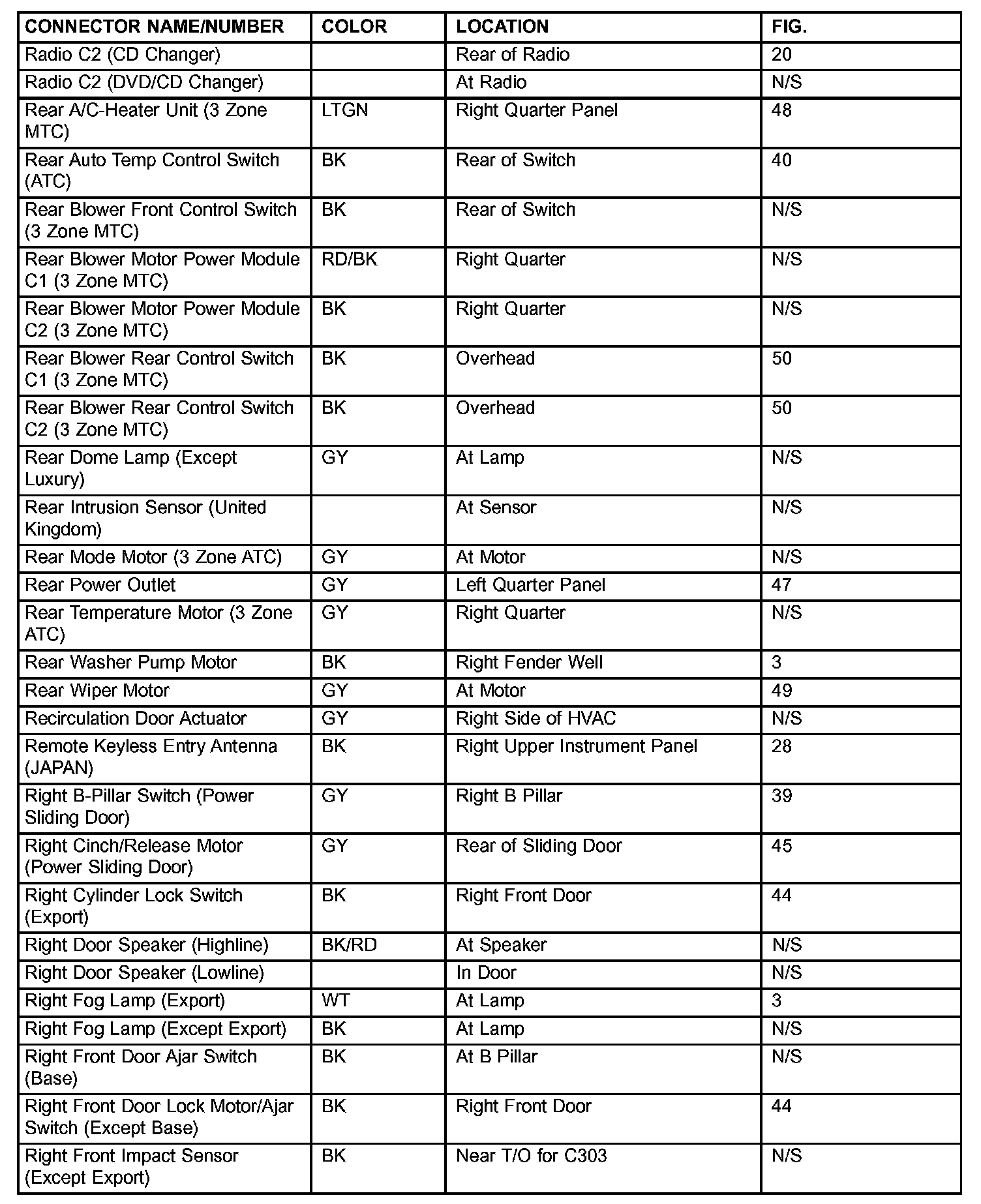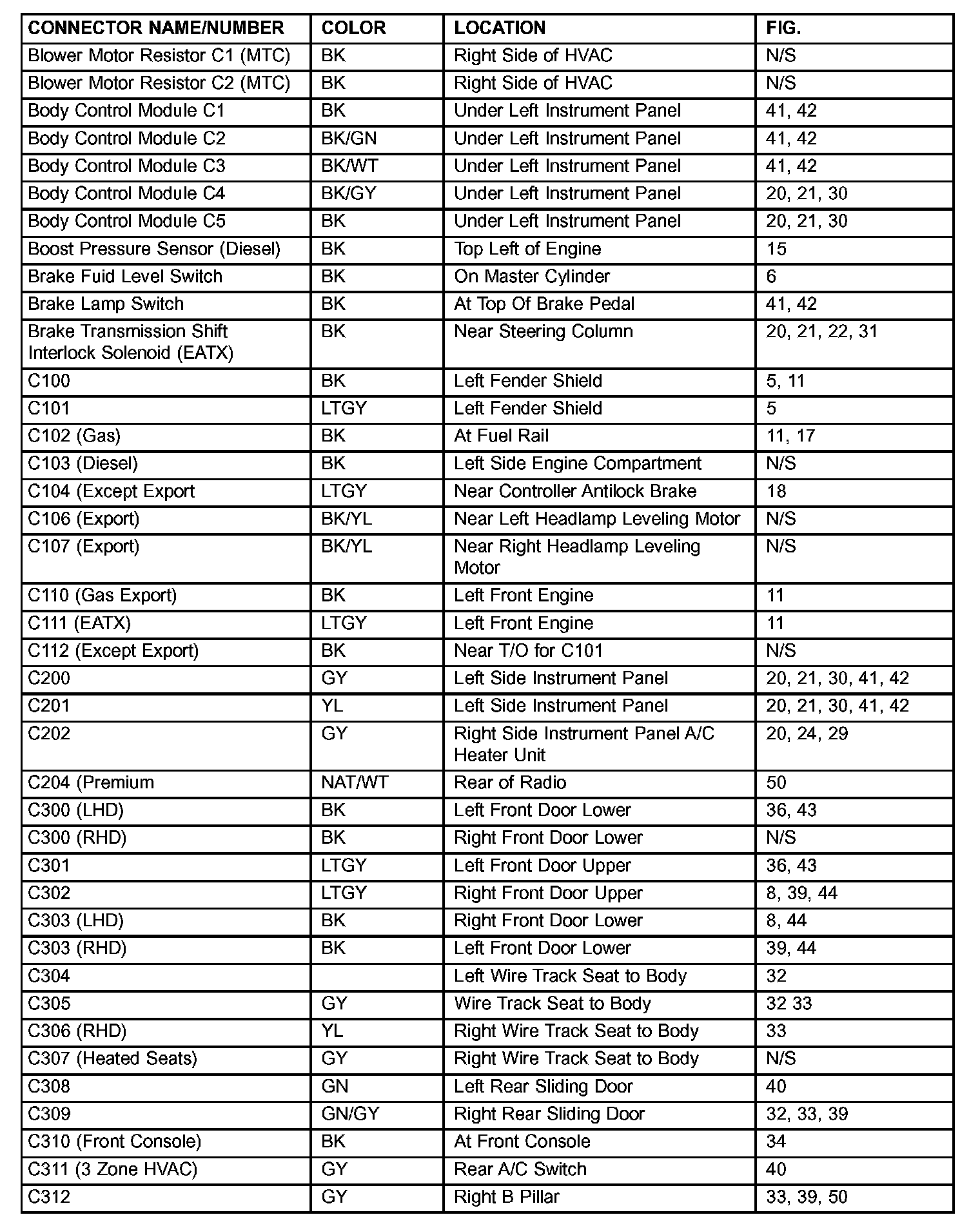 If a link on the index chart to a figure is not provided, that means that the connector and/or figure in question does NOT apply to the vehicle model selected.
