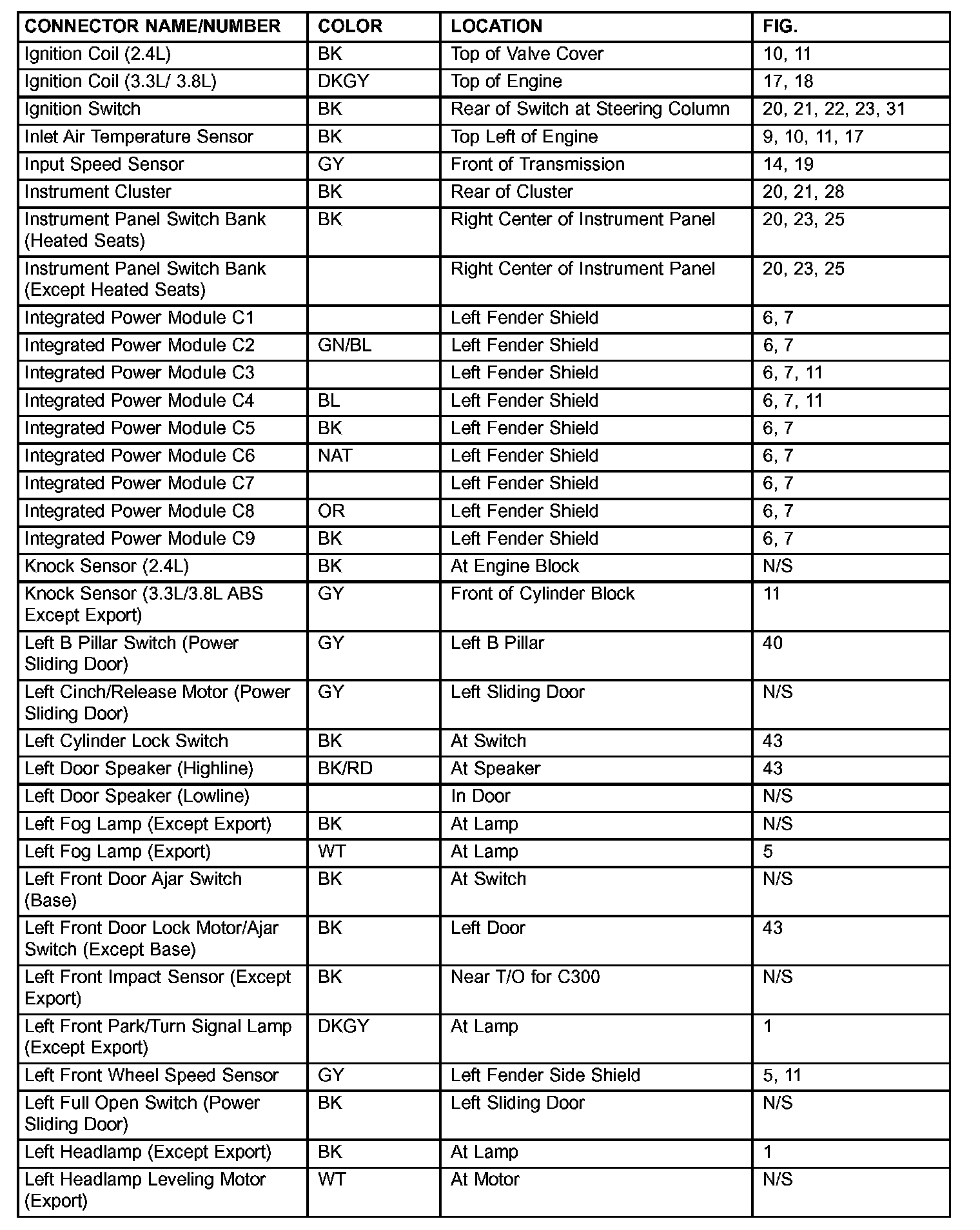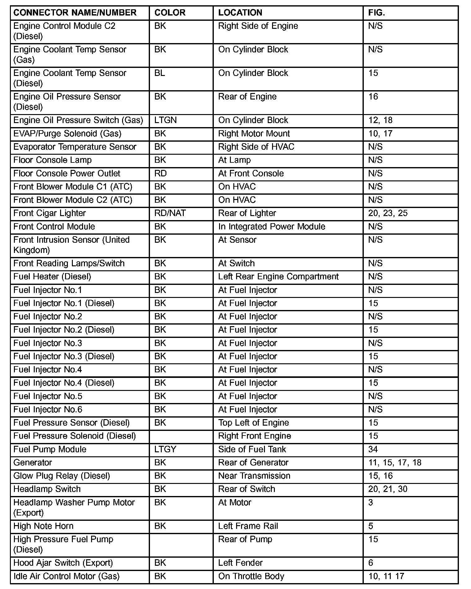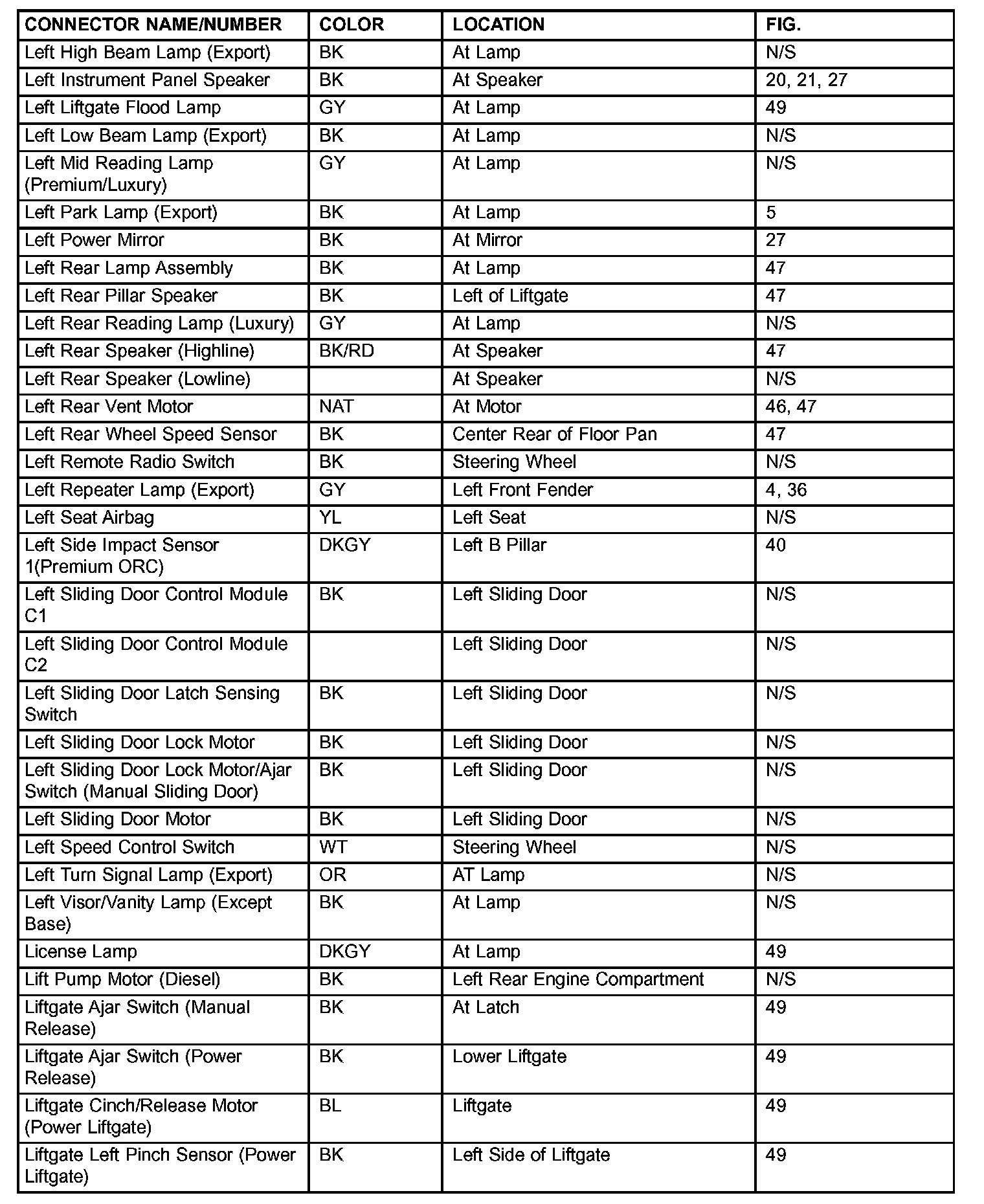 If a link on the index chart to a figure is not provided, that means that the connector and/or figure in question does NOT apply to the vehicle model selected.