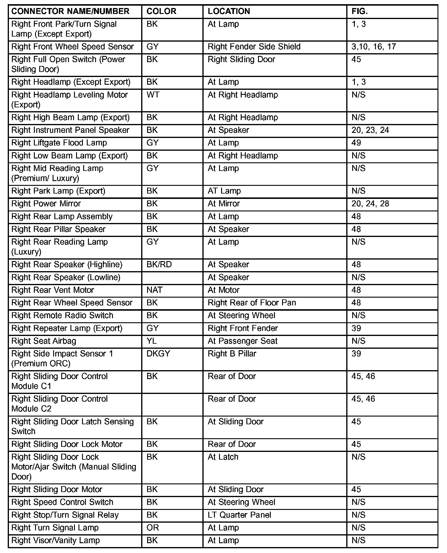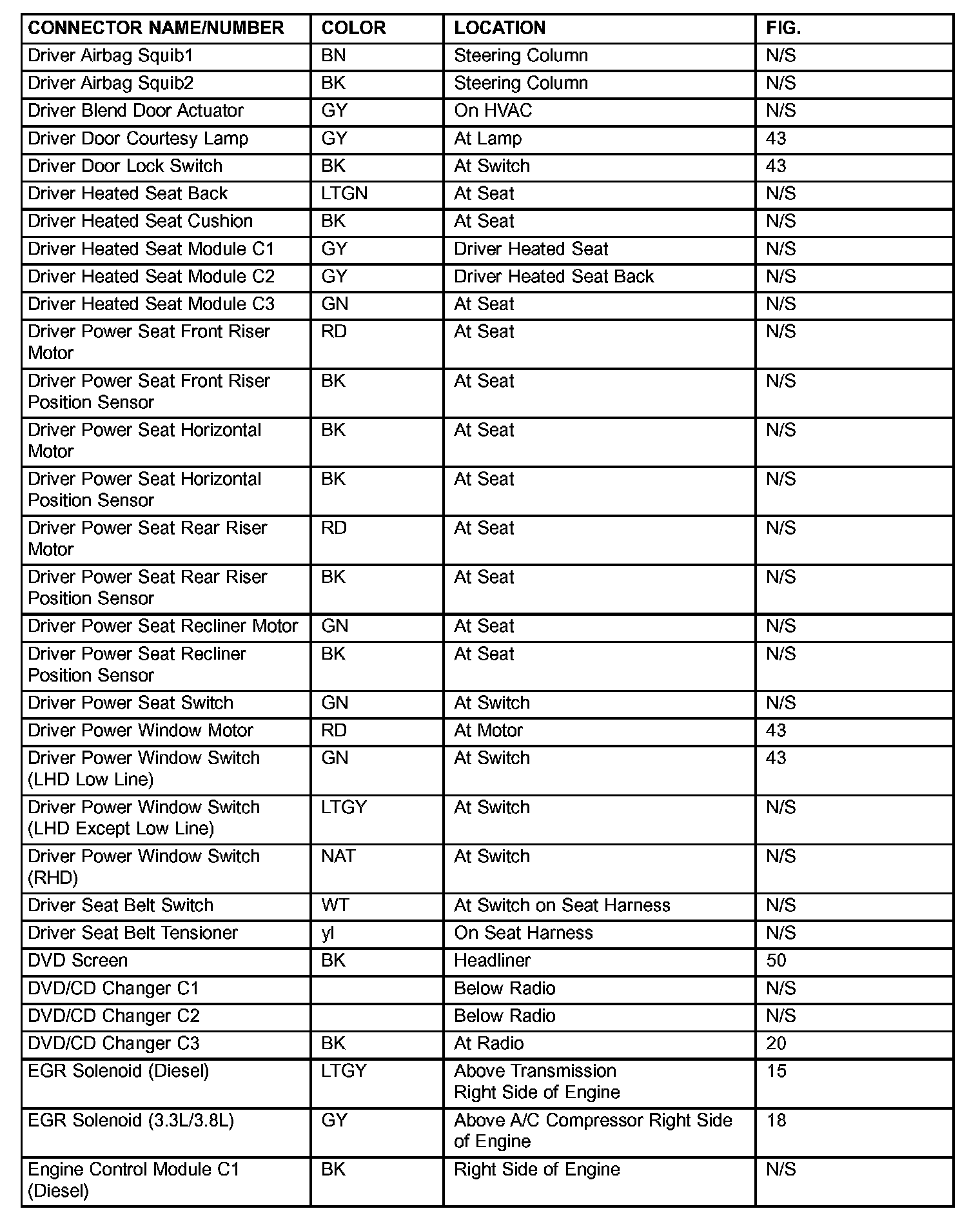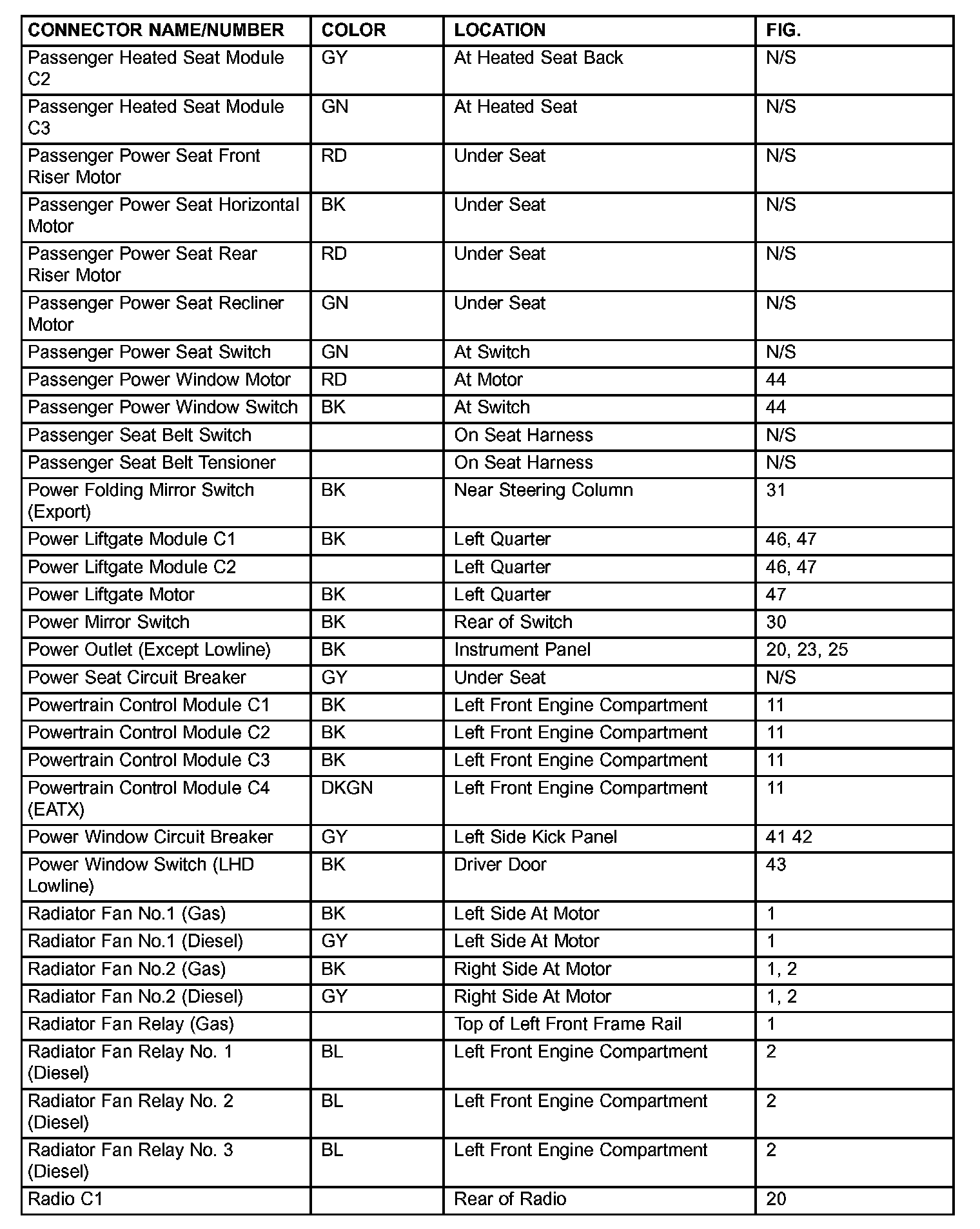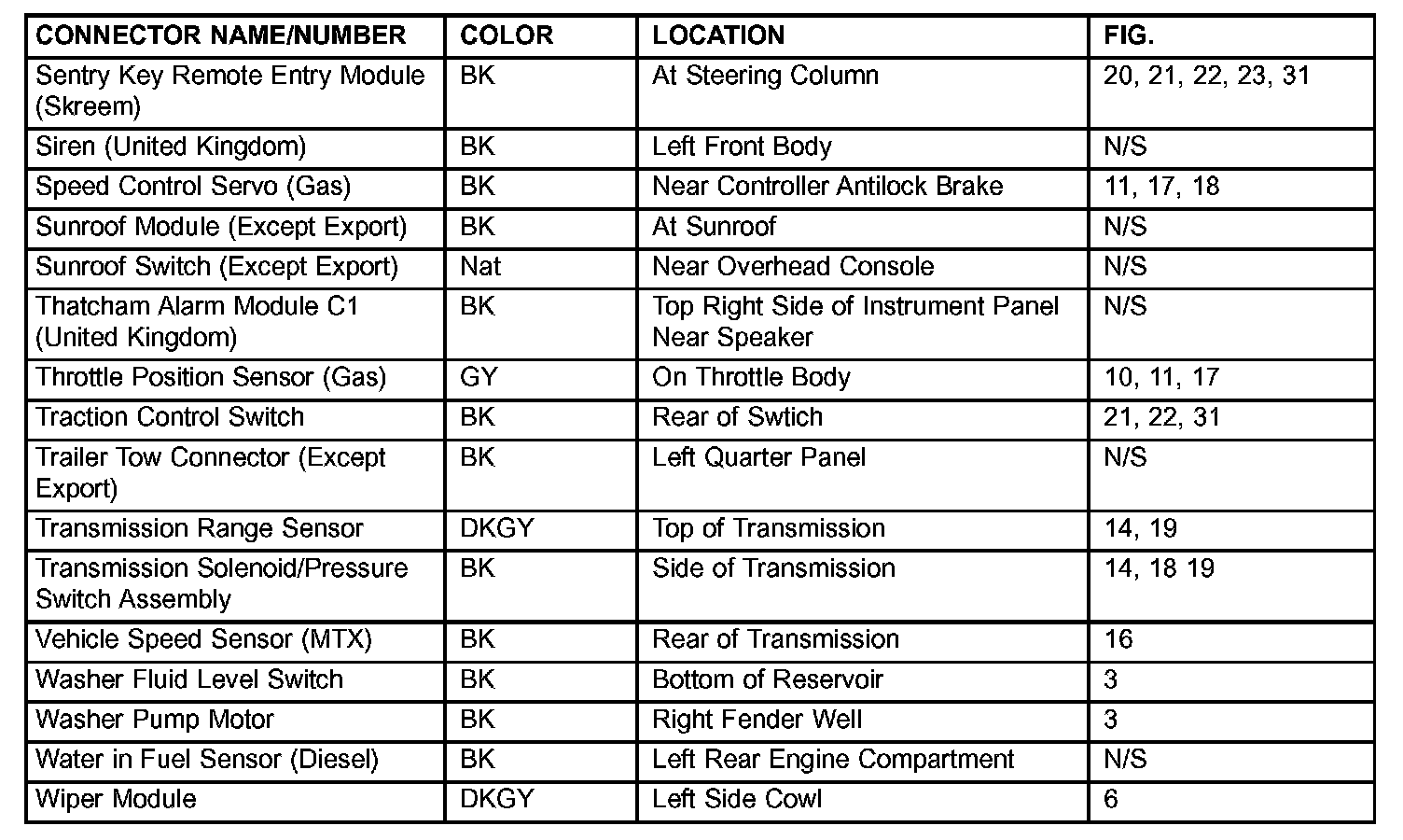 If a link on the index chart to a figure is not provided, that means that the connector and/or figure in question does NOT apply to the vehicle model selected.