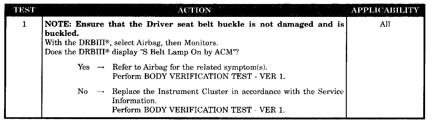 ACM seat belt indicator command present