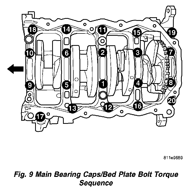 Engine block bolts (11-20) torque each bolt to 28 Nm (250 inch lbs.)