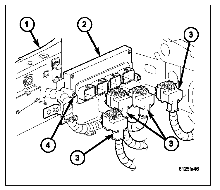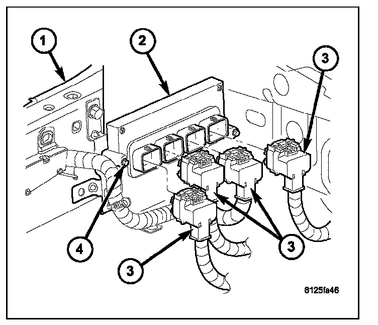 5. Install the four 38-way connectors (3) to PCM.