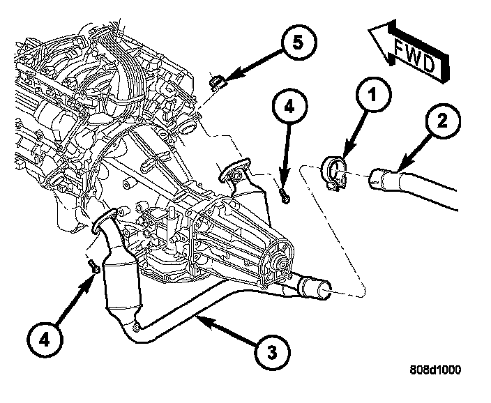 4. Remove the catalytic converter-to-manifold bolts (5).