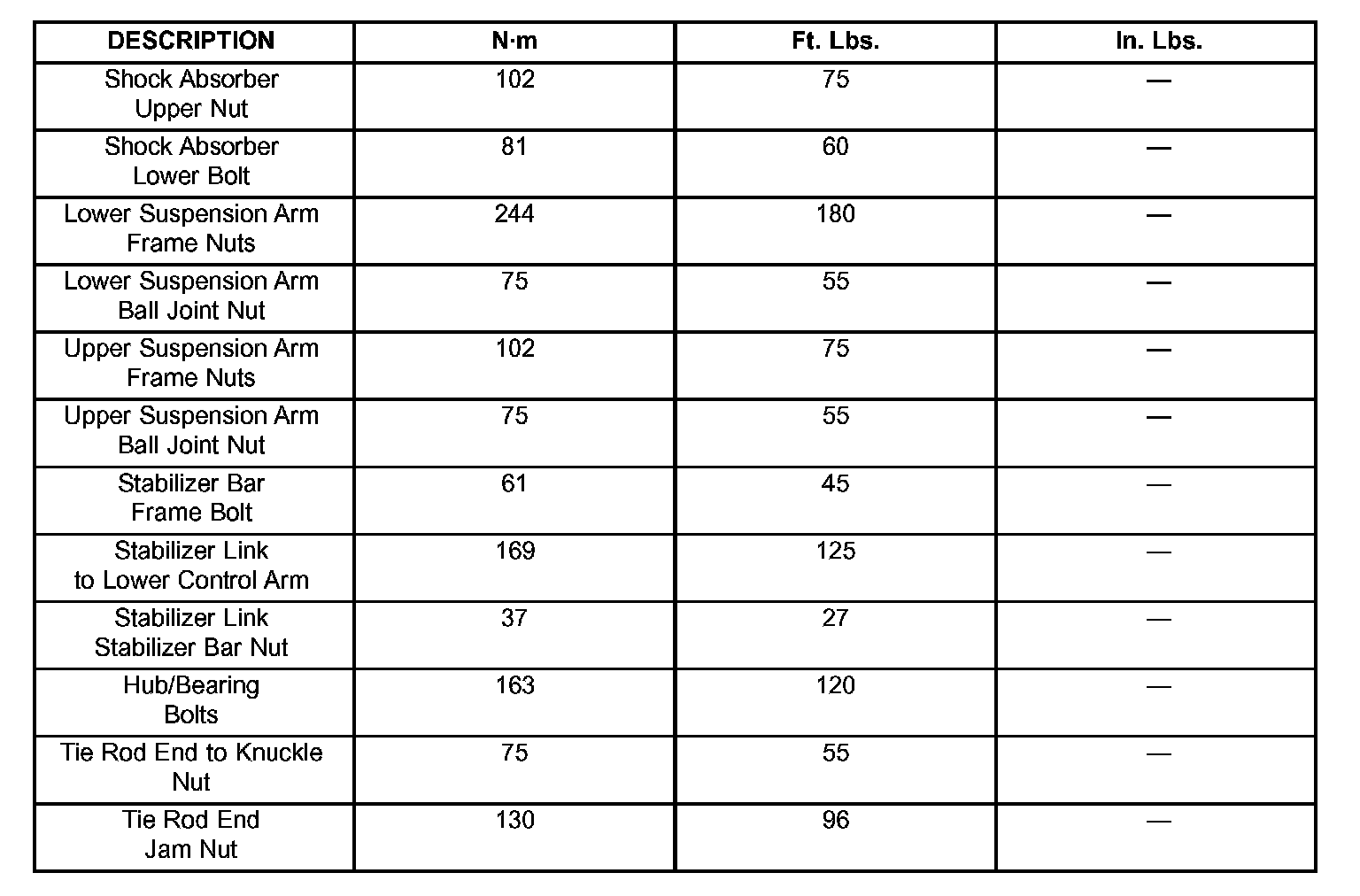 TORQUE SPECIFICATIONS:
