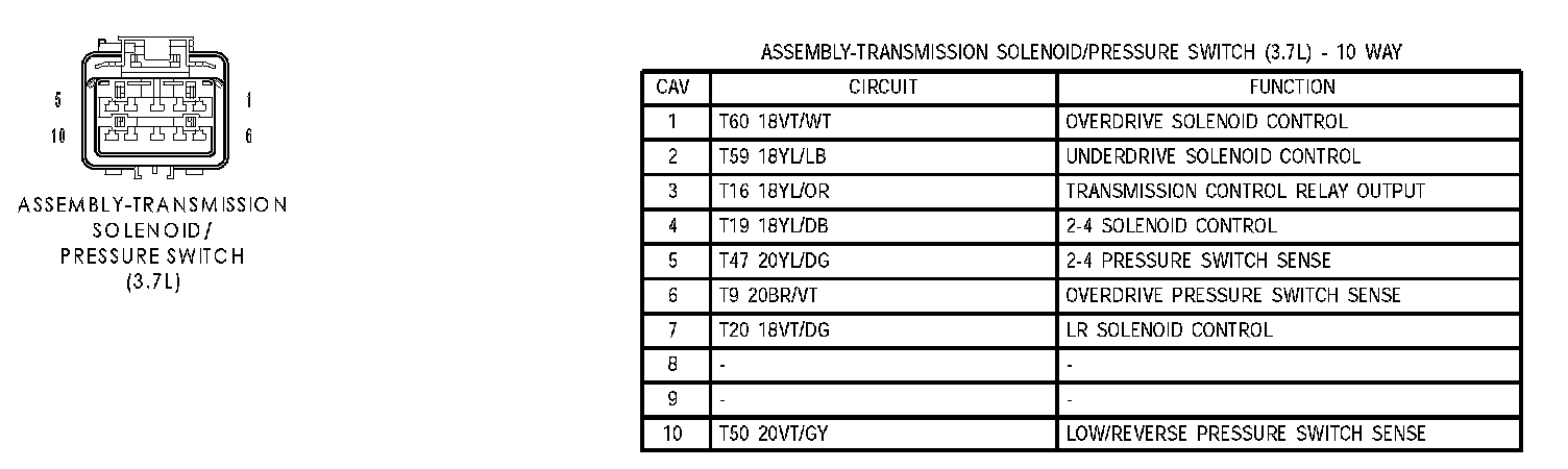 Assembly Transmission Solenoid/Pressure Switch (3.7L):