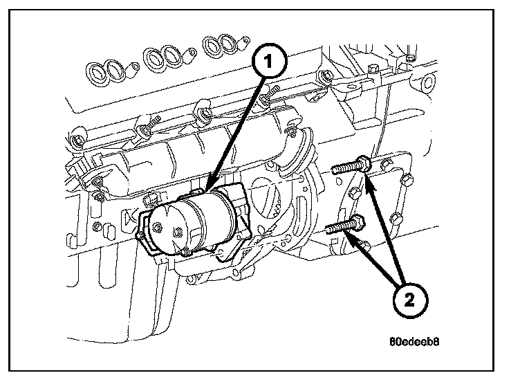 3. Position starter motor (1) to engine.