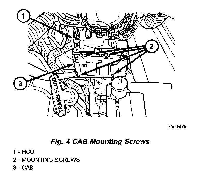 8. Remove the screws securing the CAB to the HCU
