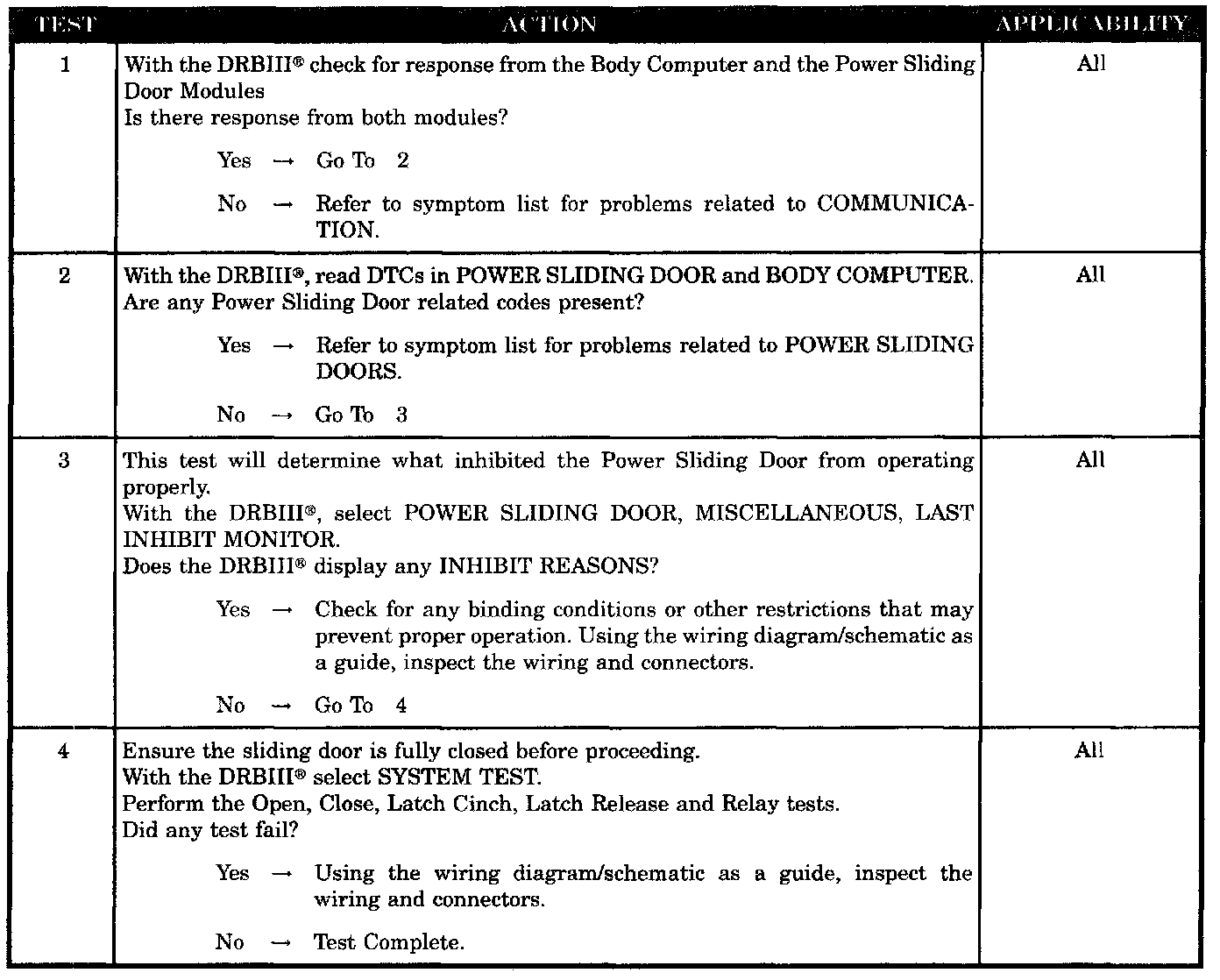 POWER SLIDING DOOR INOPERATIVE