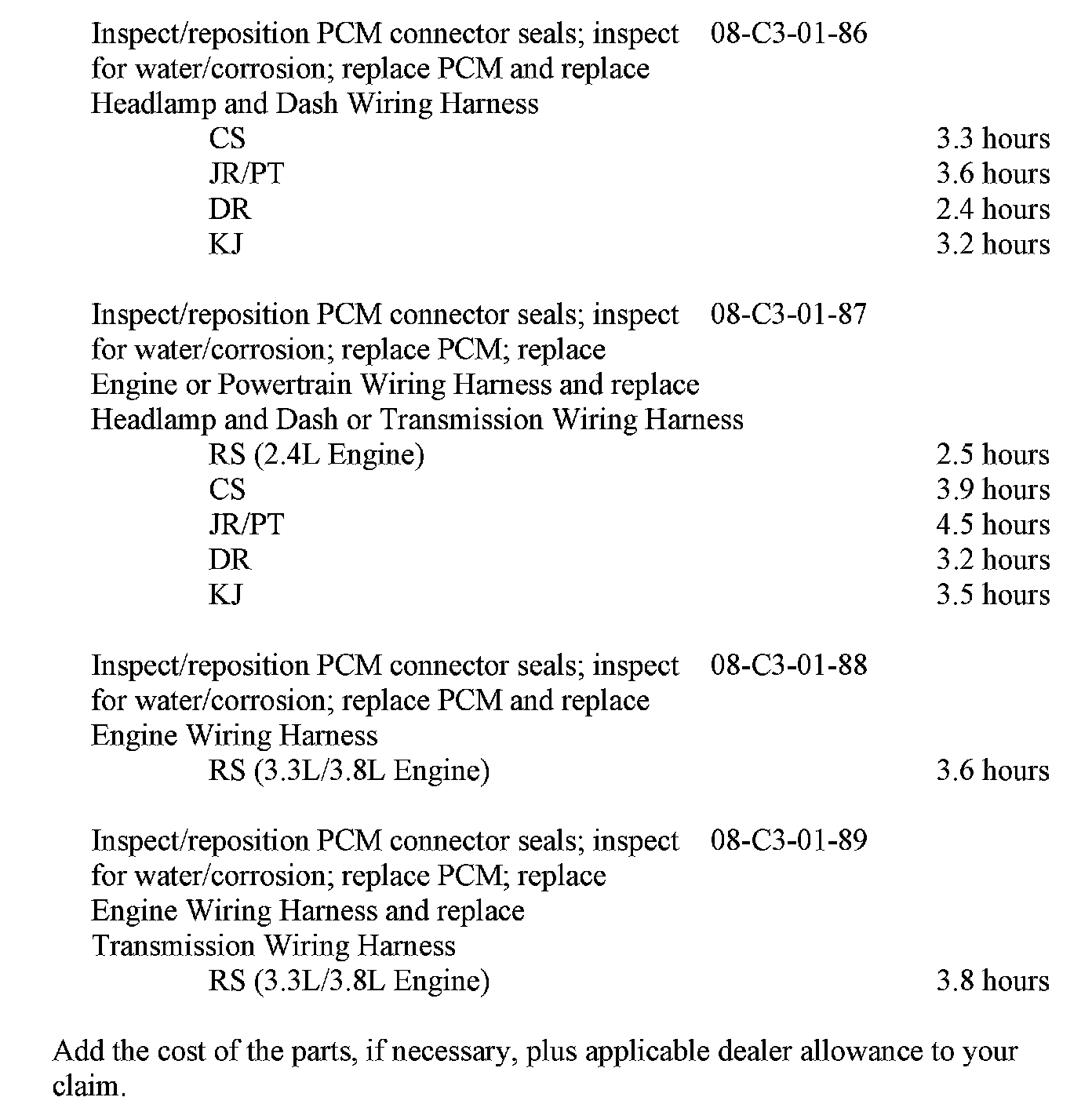 Very few vehicles are expected to require PCM and/or wiring harness replacement.