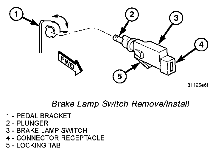 3. Depress the locking tab on the brake lamp switch body behind the pedal bracket and rotate the switch counterclockwise about 30 degrees.