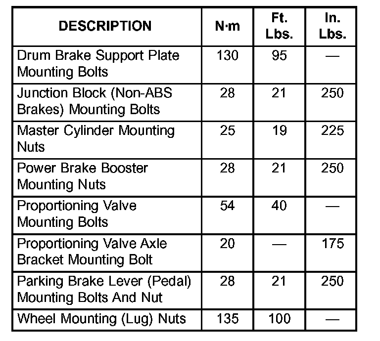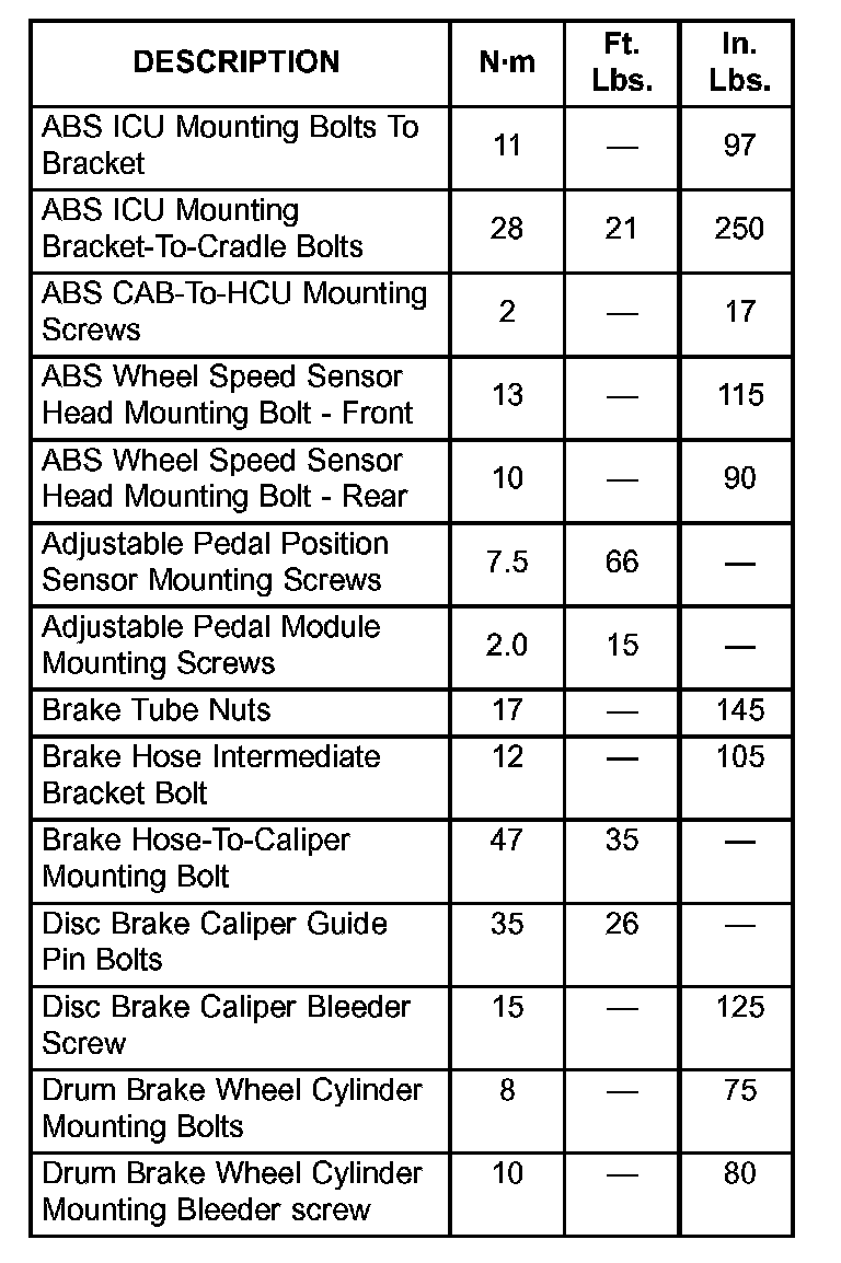 BRAKE FASTENER TORQUE