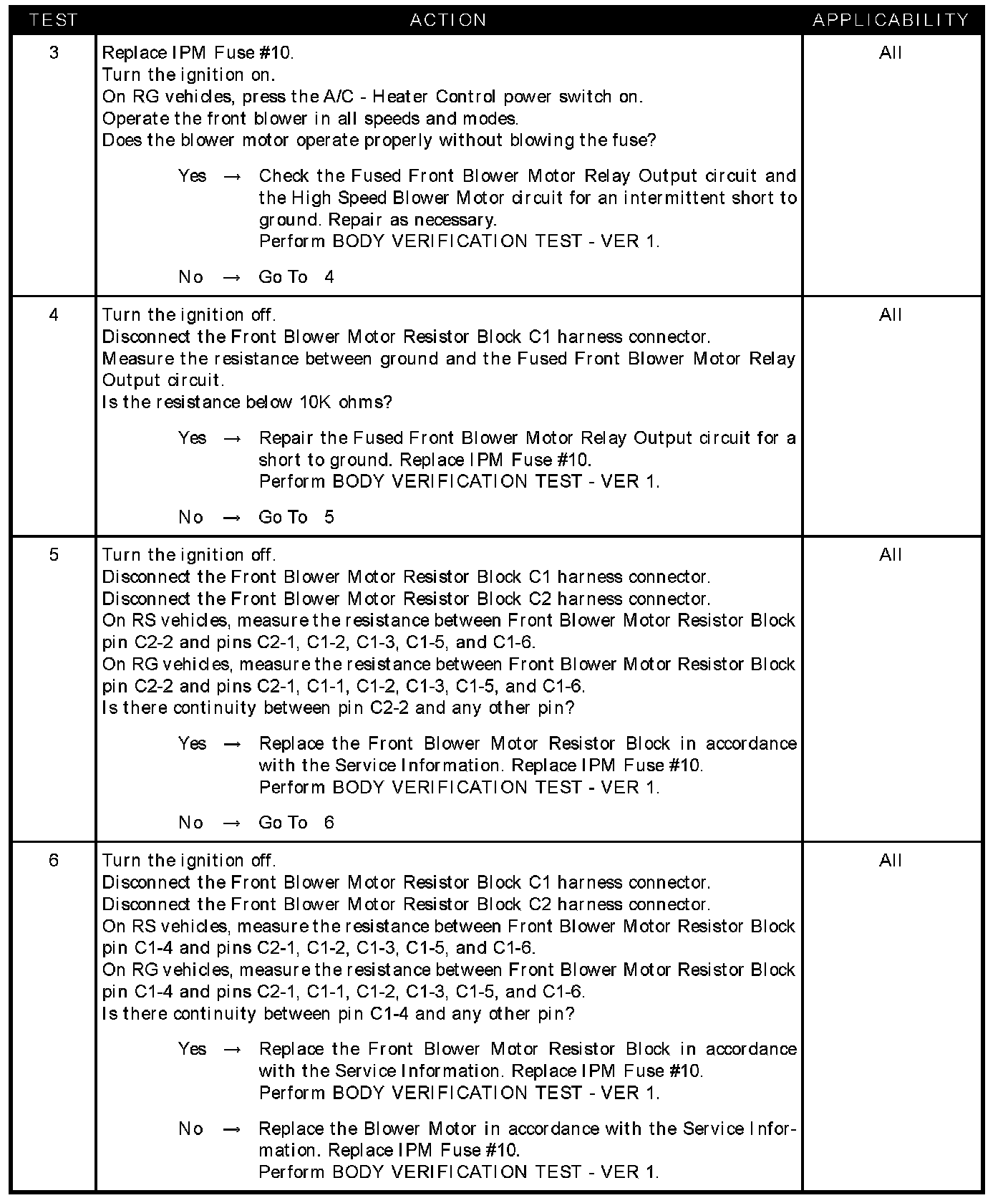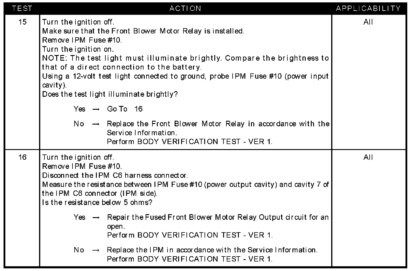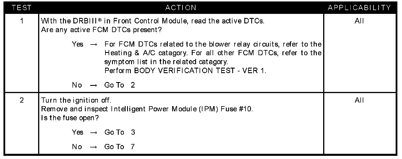 - Fused front blower motor relay output circuit open