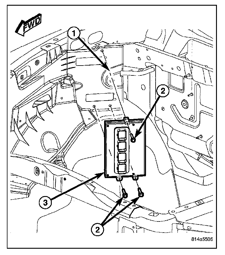 - Use the DRB scan tool to reprogram the new PCM with the vehicles original identification number (VIN) and the vehicles original mileage. If this step is not done, a Diagnostic Trouble Code (DTC) may be set.