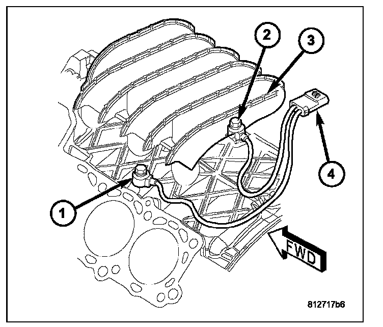 5. Connect knock sensor wiring harness to engine harness at rear of intake manifold.
