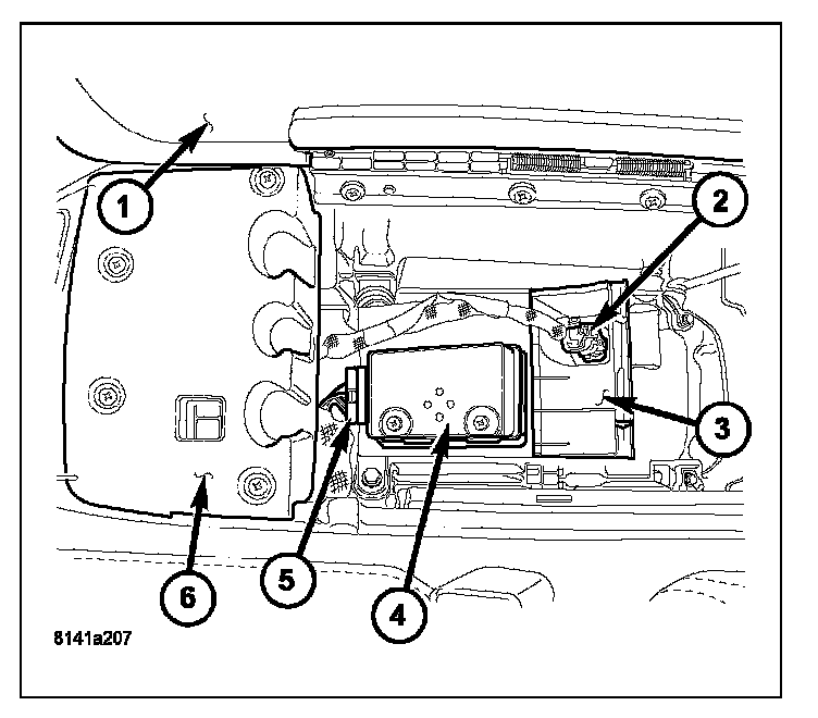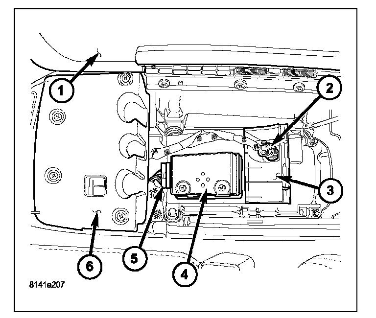 5. Remove the two fasteners securing the module (4).
