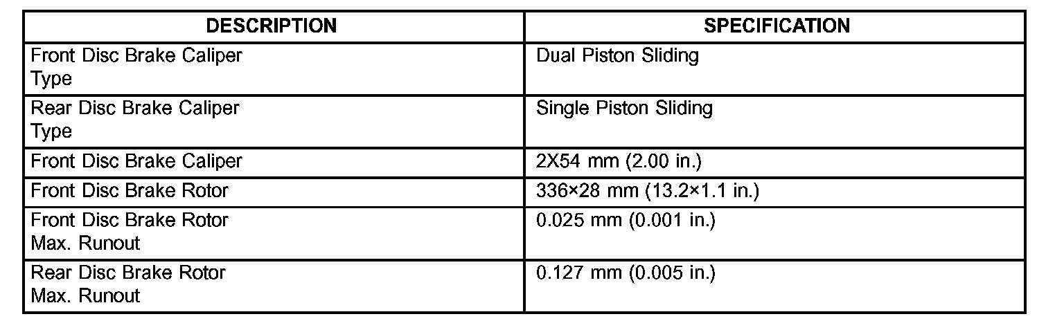 Base Brake General Specifications