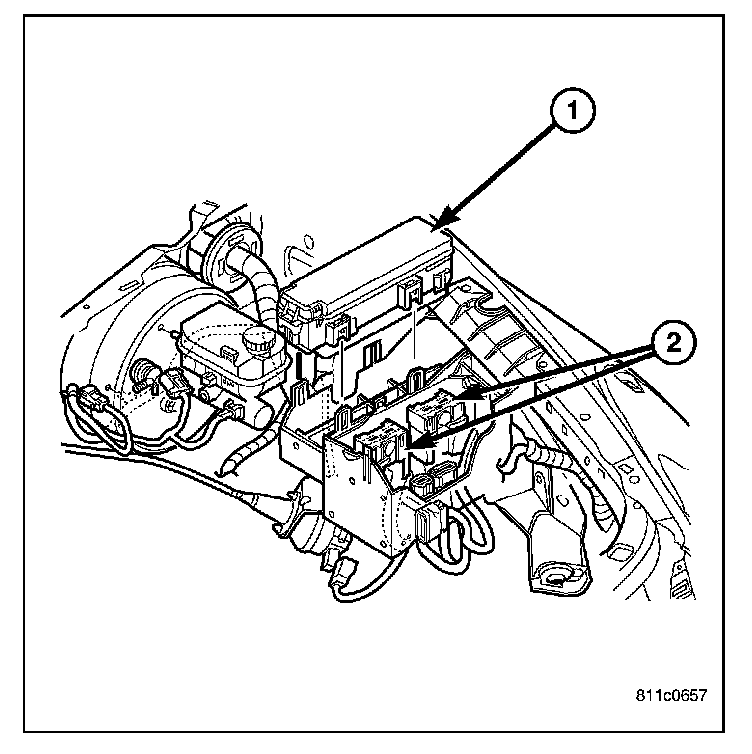 3 Disconnect electrical harness connectors (2) and remove PDC.