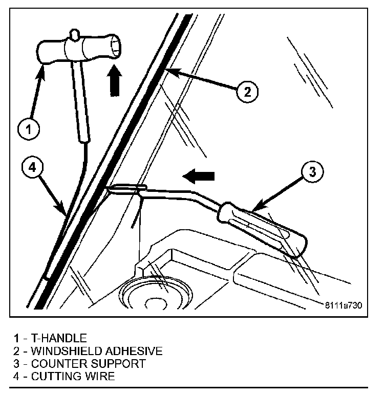 CAUTION: Roll down the left and right front door glass and open the rear glass slider (if available) before installing windshield to avoid pressurizing the passenger compartment if a door is slammed before urethane is cured. Water leaks can result.