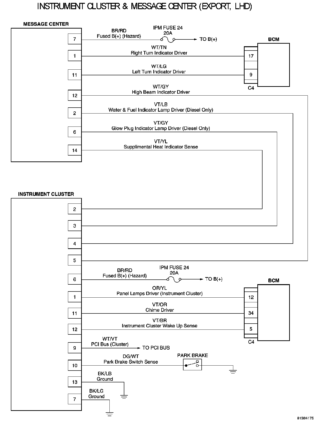Instrument Cluster And Message Center (export, LHD):
